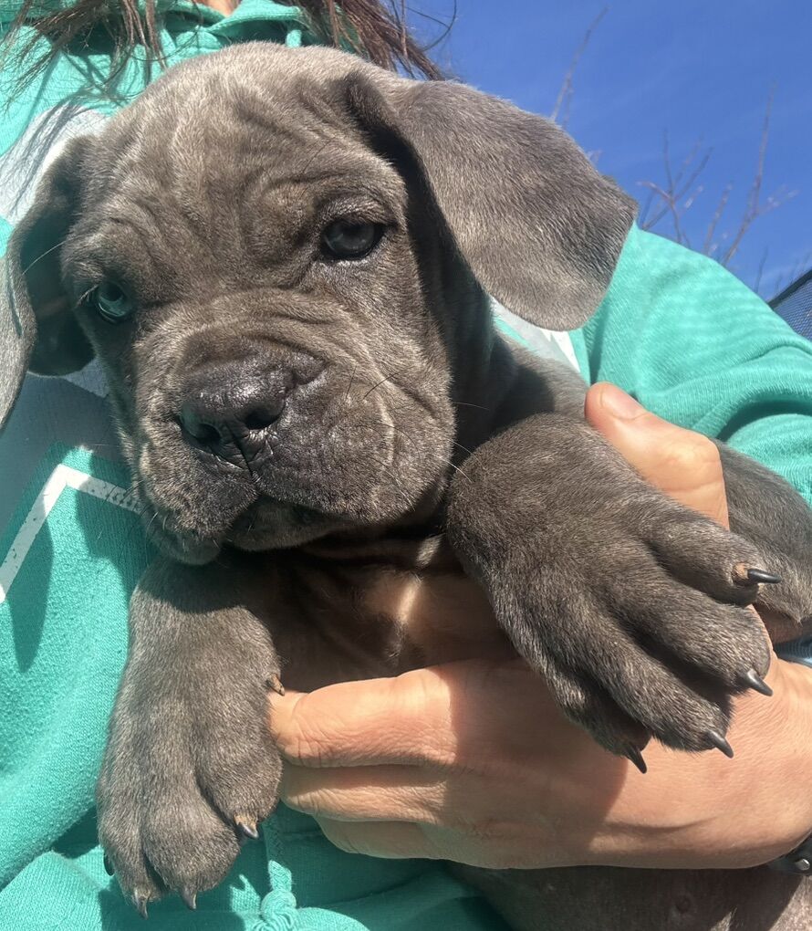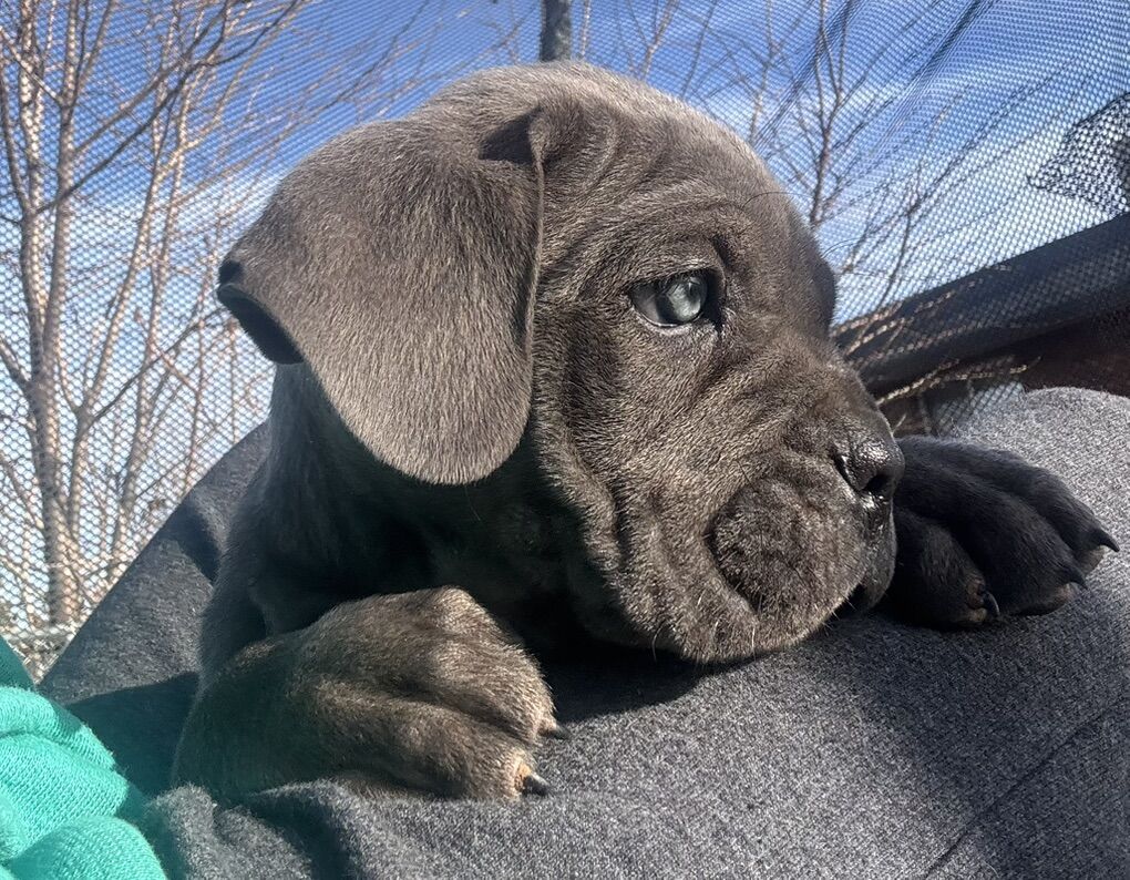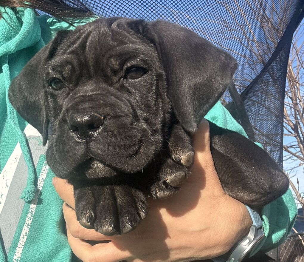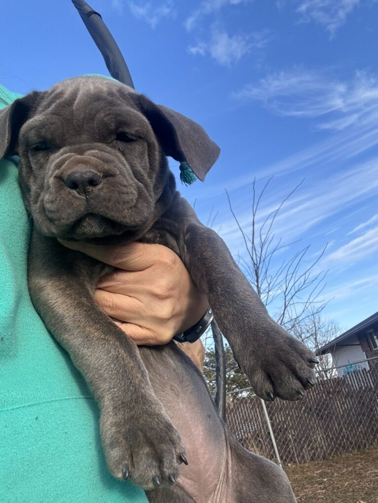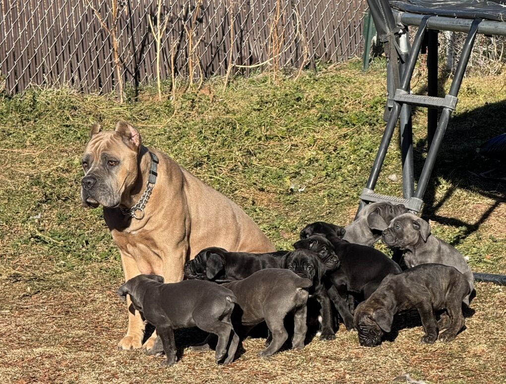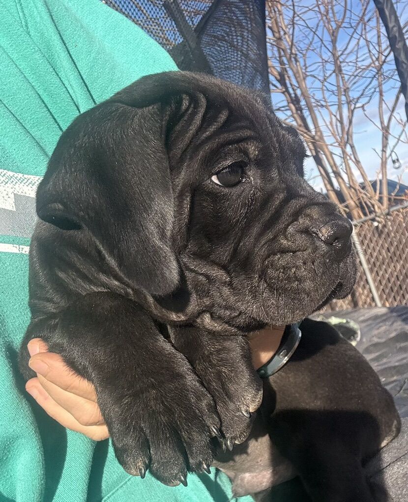 ZelleCane Corso pups, ICCF registered, born 12/28/25, only 2 boys left ( 1 blue 1 black), and 3 girls ( 1 blue, 2 black), ready to be rehomed. DM for more details and fees. Will hold with deposit.