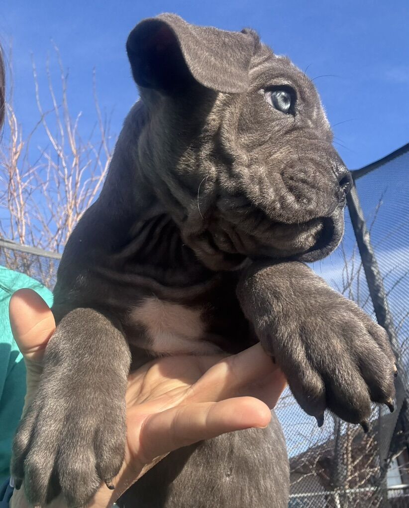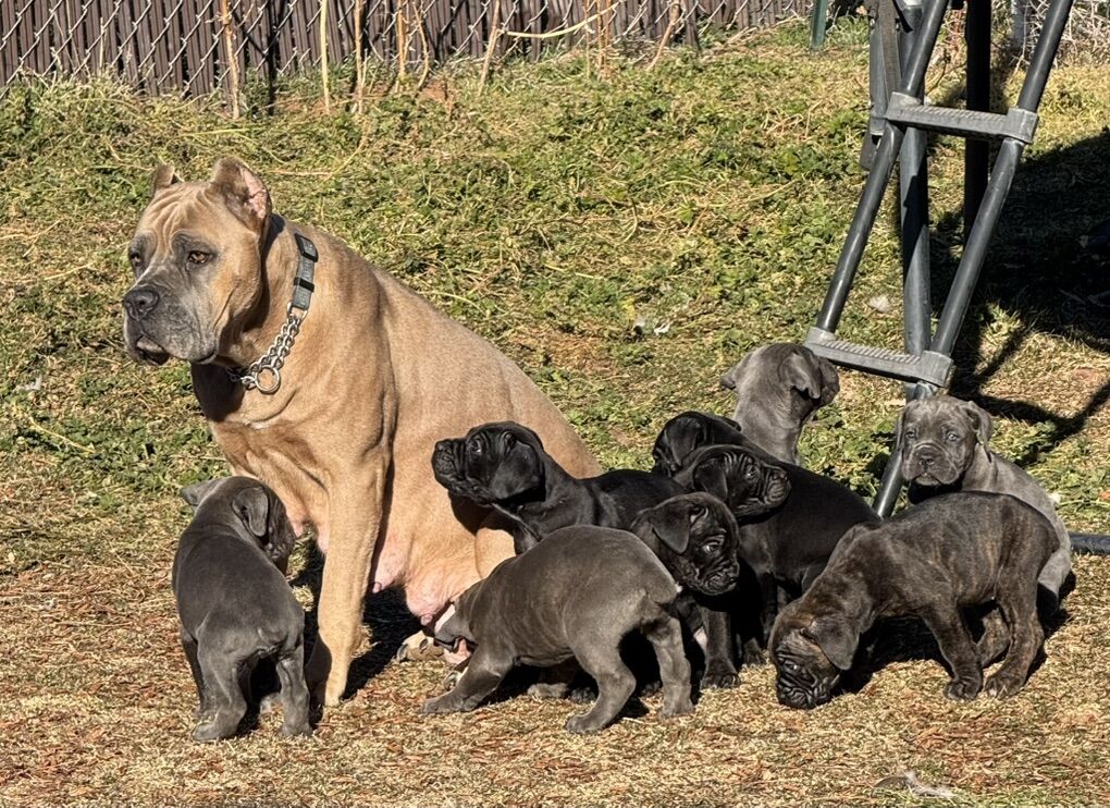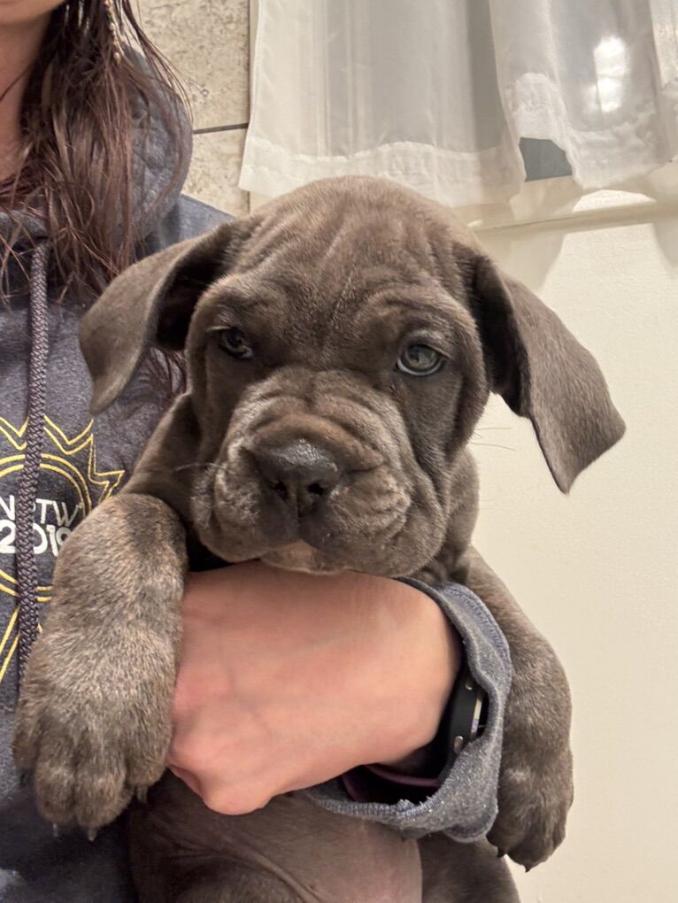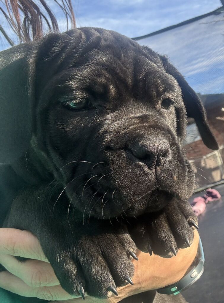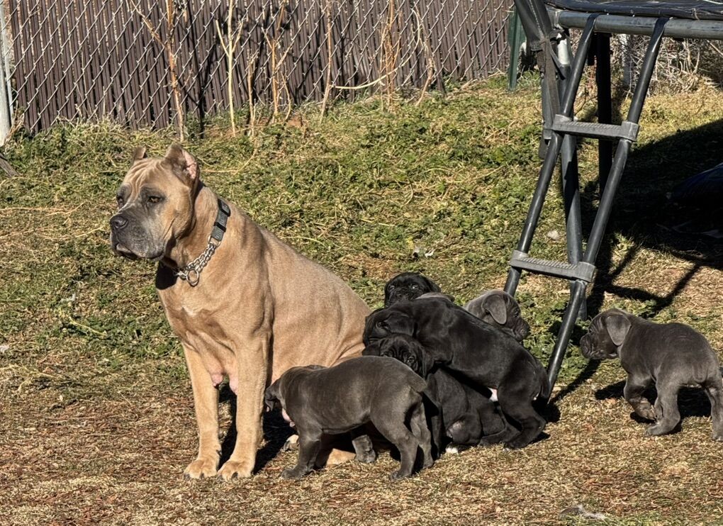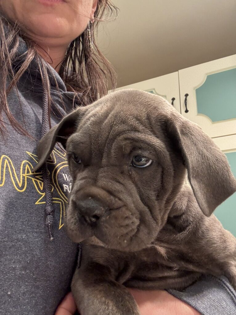 ZelleCane Corso pups, ICCF registered, born 12/28/25, only 2 boys left ( 1 blue 1 black), and 3 girls ( 1 blue, 2 black), ready to be rehomed. DM for more details and fees. Will hold with deposit.