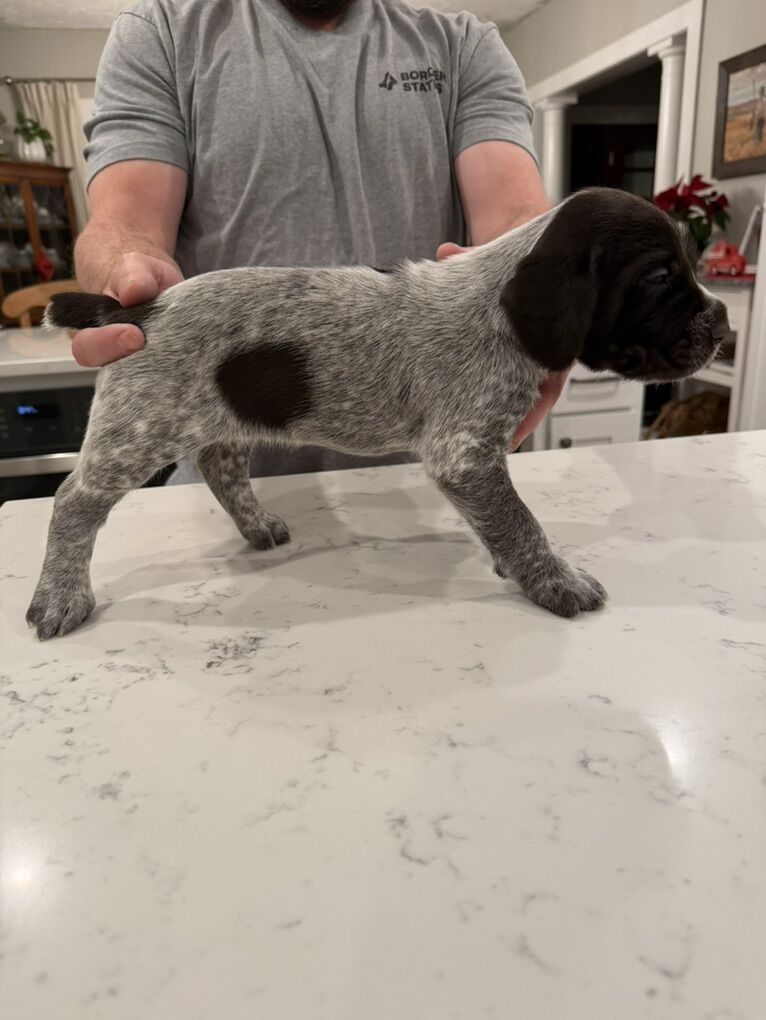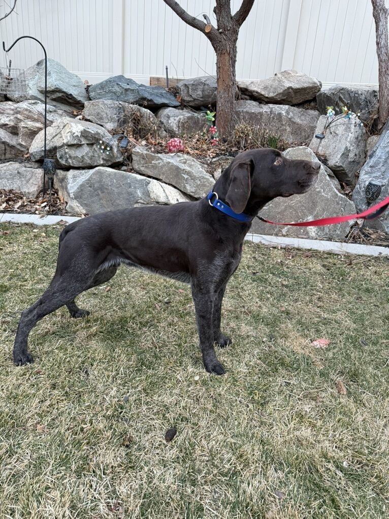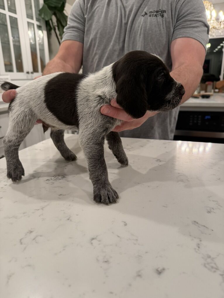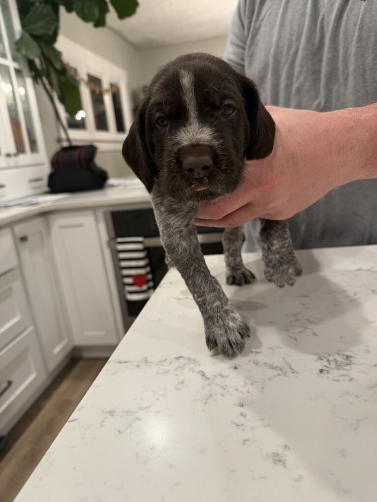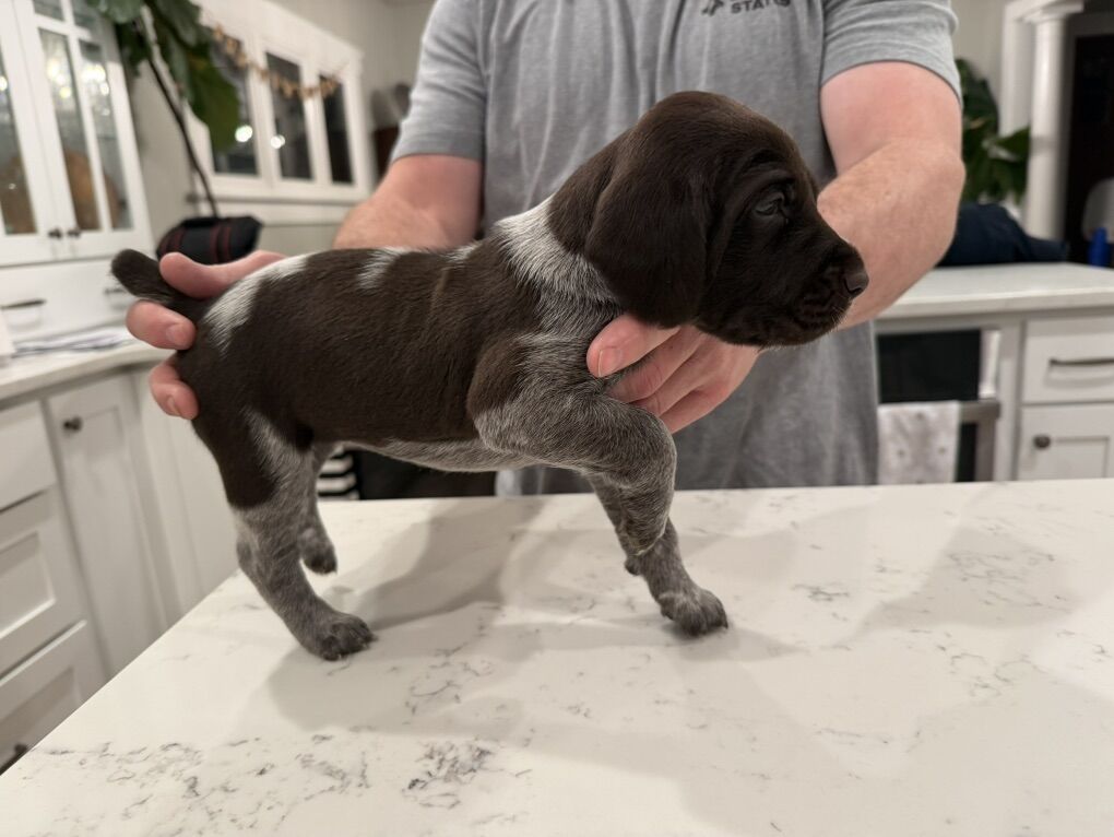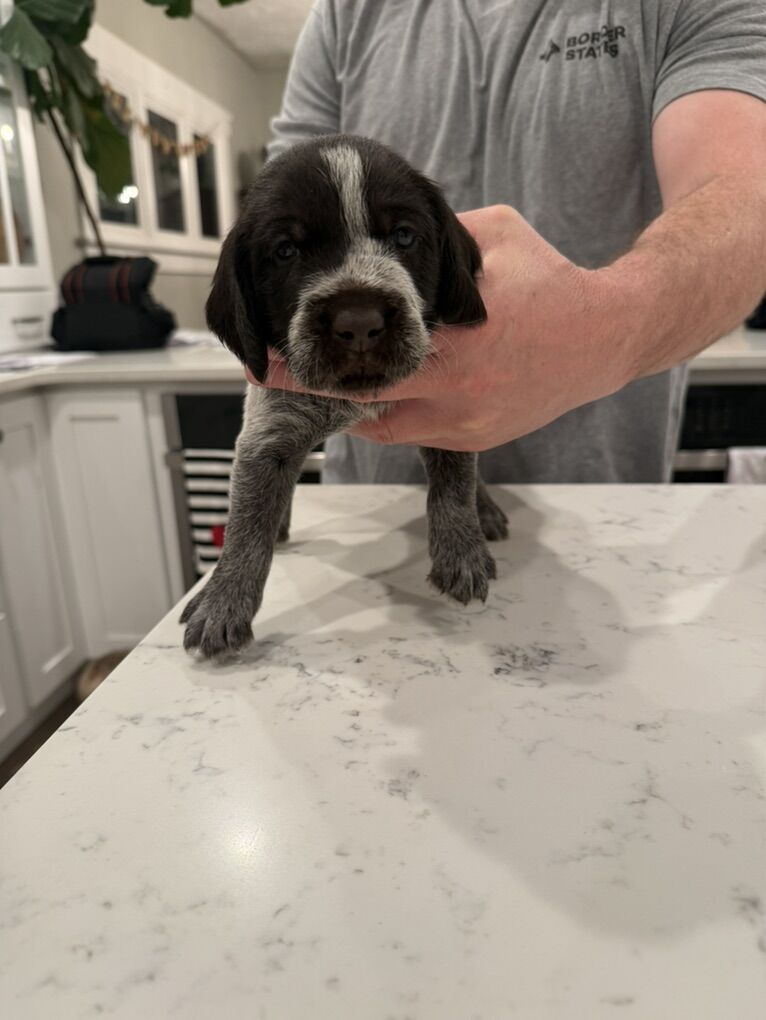 This cross is from (Male) Smith’s Hard Knox Life and (Female) Princess Pam Whoa. Pups were born on January 25th. The male is all slick coat. He has tremendous prey drive and a wonderful retrieve. He has a good 100-150 yard run in him. The female has amazing prey drive and makes casts out to 100-150 yards. Both sire and dam have hunted consistently Sharptail, Huns, Chukar, Forest Grouse, Sage Grouse, Pheasant, variety of Quail, and Waterfowl. Both male and female love the water.