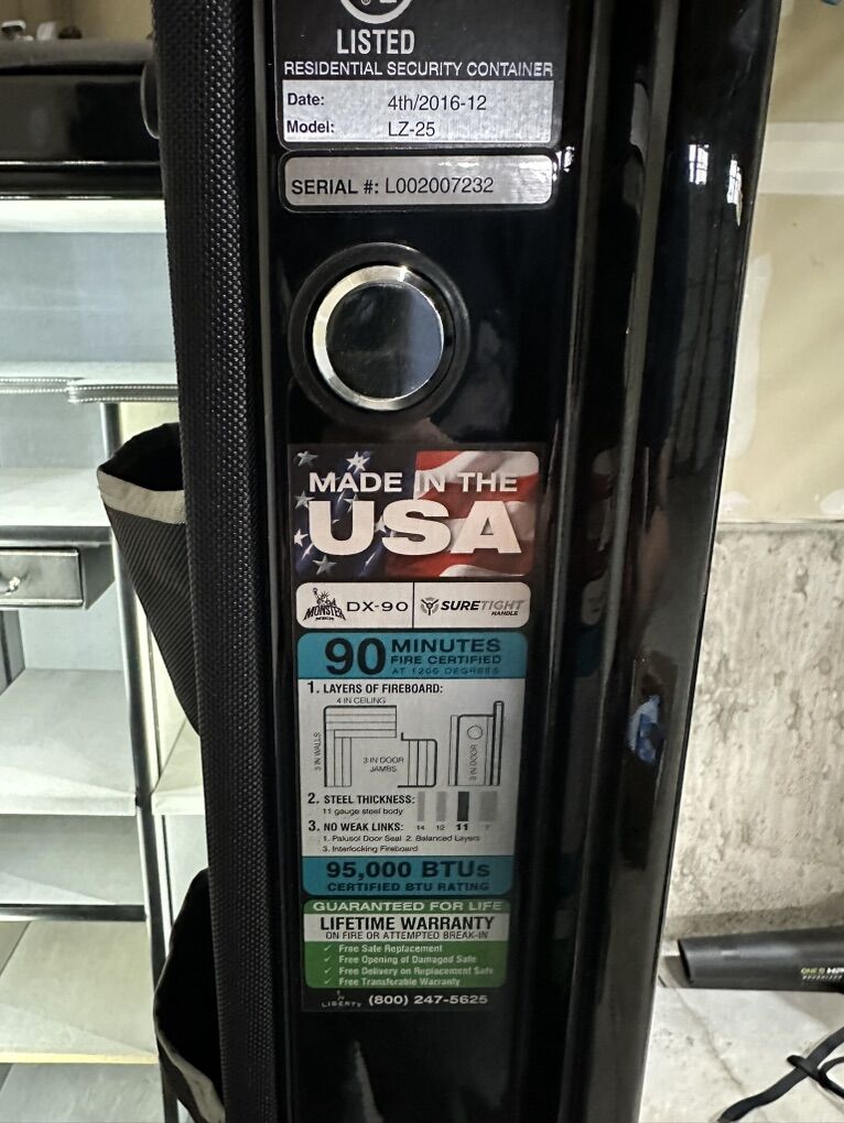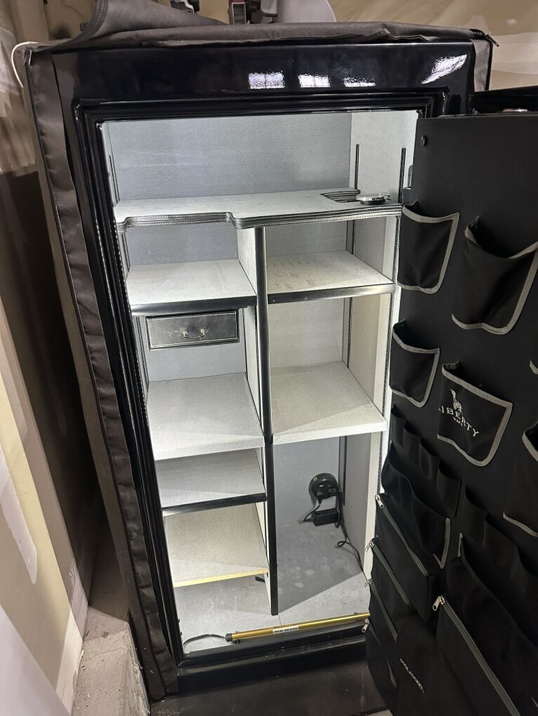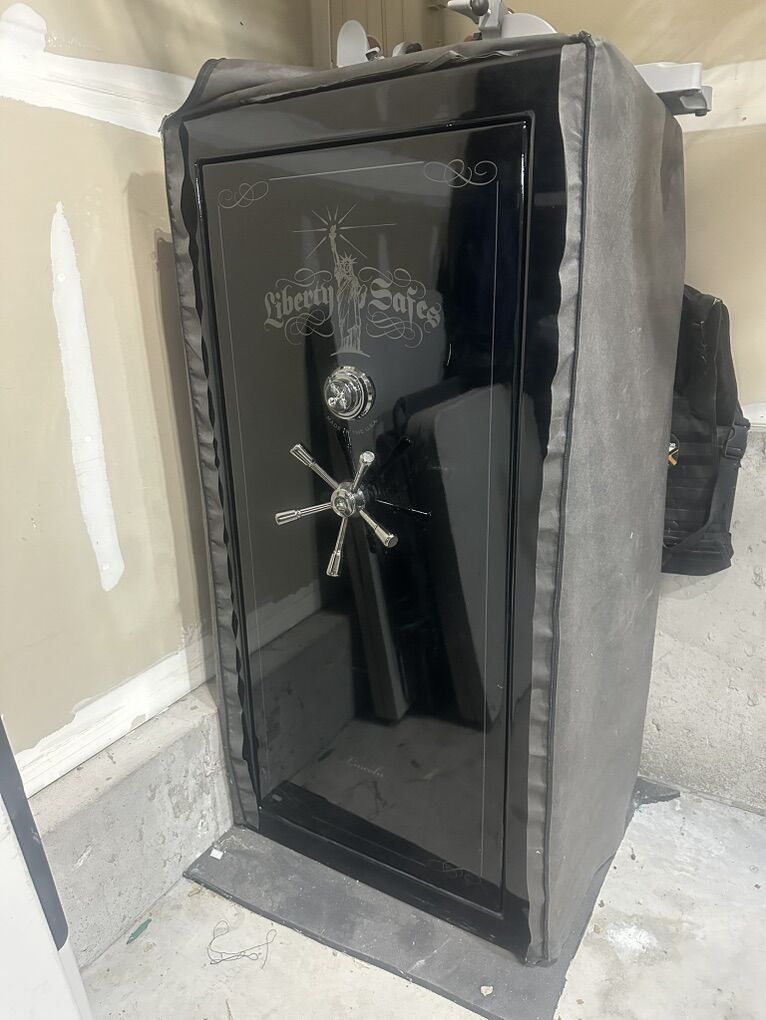 Venmo$2200 OBO Liberty Safes Lincoln 25 in glossy piano black with black chrome hardware. 90 min fire rating with grey velour interior. LED lighting and integrated power and network ports. Comes with a jewelry compartment and a door organizer with a cool pocket for document storage. Small scuffs from 3 different moves. Has been covered with a liberty safe cover for the 9 years I’ve had it.