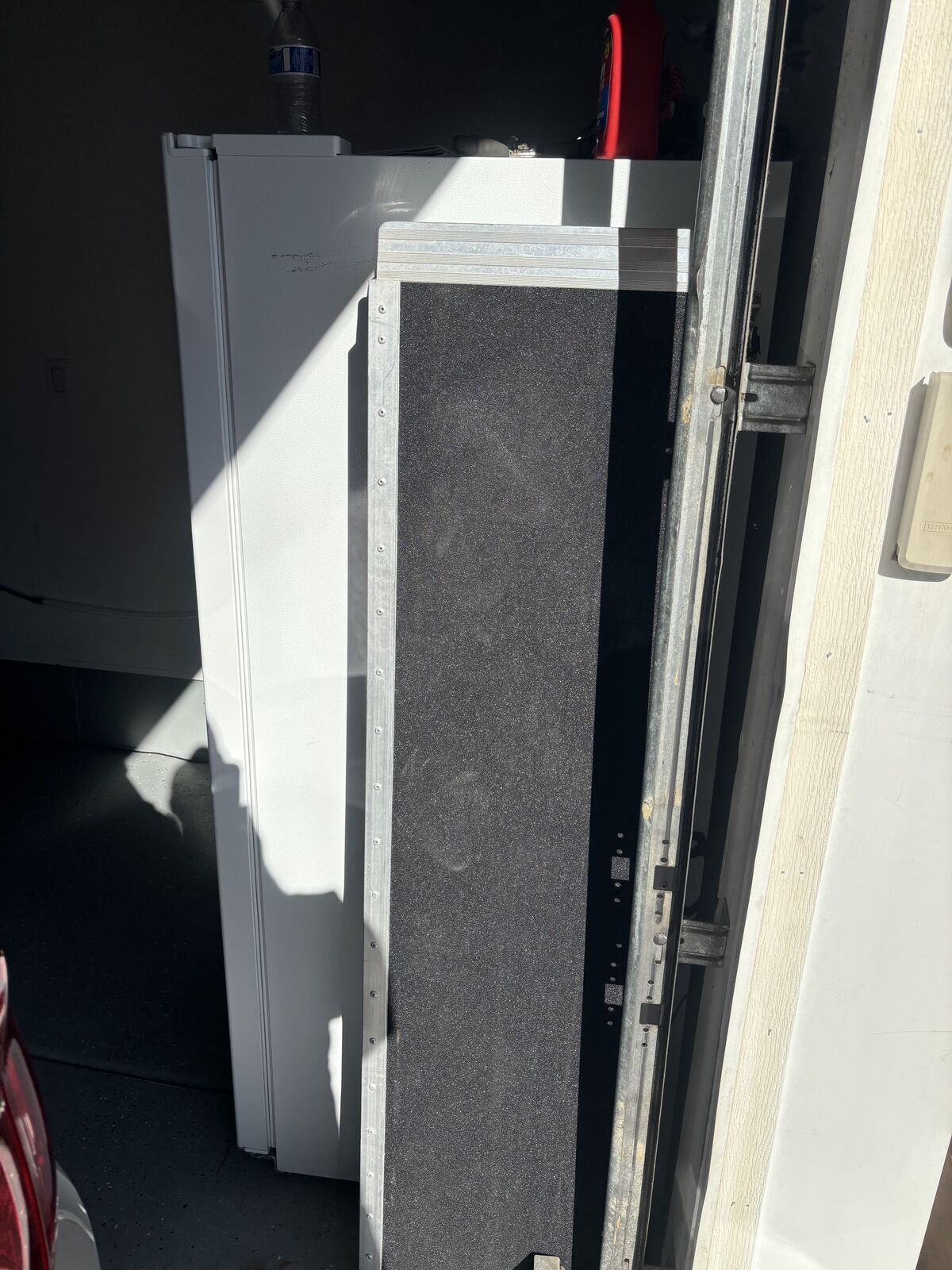 VenmoFolds easily for storage. Lock system to hold when folded position. Gently used, excellent condition. Separate threshold doorway ramp included.