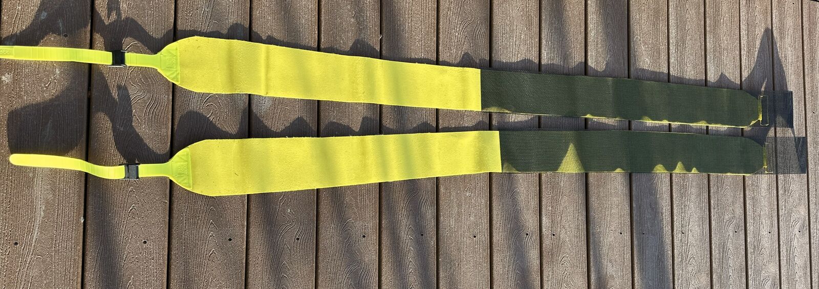 Faction touring climbing skins. The skins are cut to about 104mm wide and used to fit a pair of 174cm L (+/- few cm adjustable) x 104mm W skis. They were used only a few times and still in a good condition. A pair of brand-new mesh separators (cheat sheets) were just added at no extra cost to you. You are welcome to bring your skis and try them on.