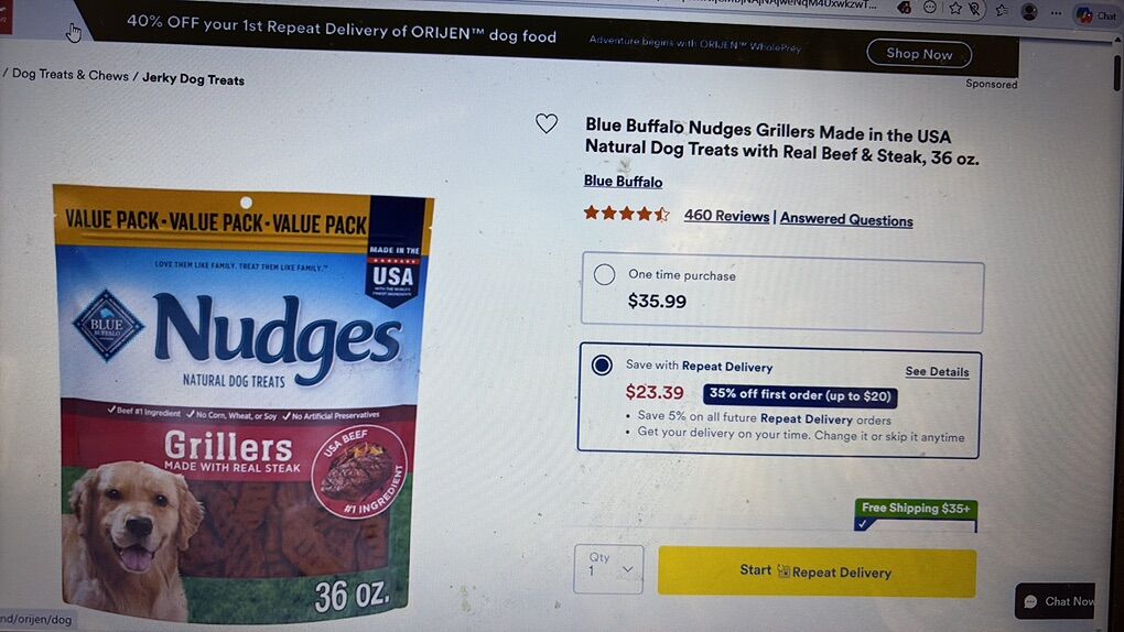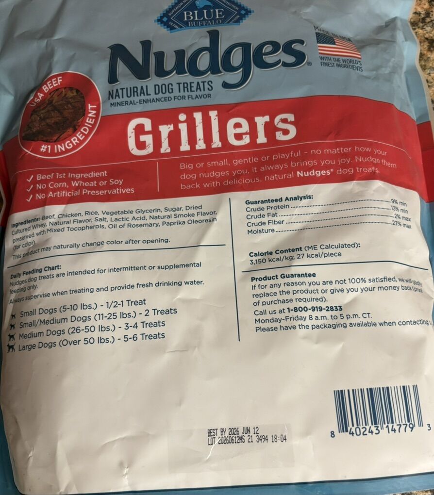 Blue Nudges Grillers 48oz bags. $15 per bag. I have 10 bags left. They expire on June 12, 2026. I lost both of my fur babies and no longer need them. Cash only.