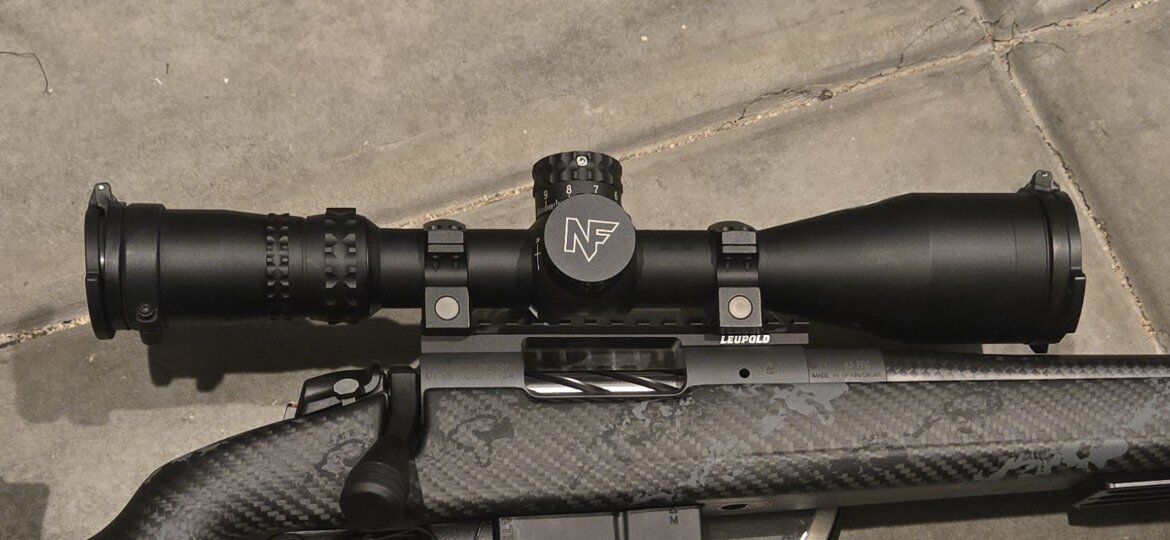 Nightforce Nx8 4-32x56 F1 Mil C. It has Nightforce flip caps, Nightforce Ultralite rings, and a MKM bubble level. It has been hunted with and has some light scratches on the front of the scope. Very small and not really noticeable. I will get actual pictures up tomorrow. Thanks for looking