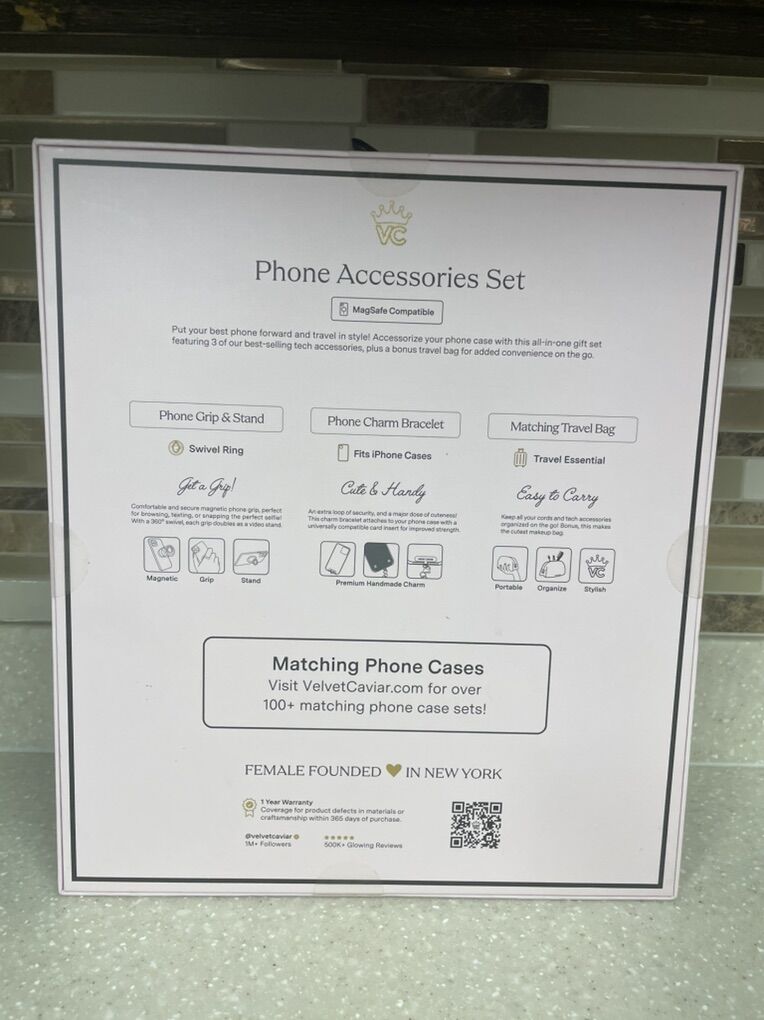 VenmoThis Velvet Caviar phone accessories set includes a MagSafe compatible ring grip, a phone charm bracelet, and a matching travel bag.