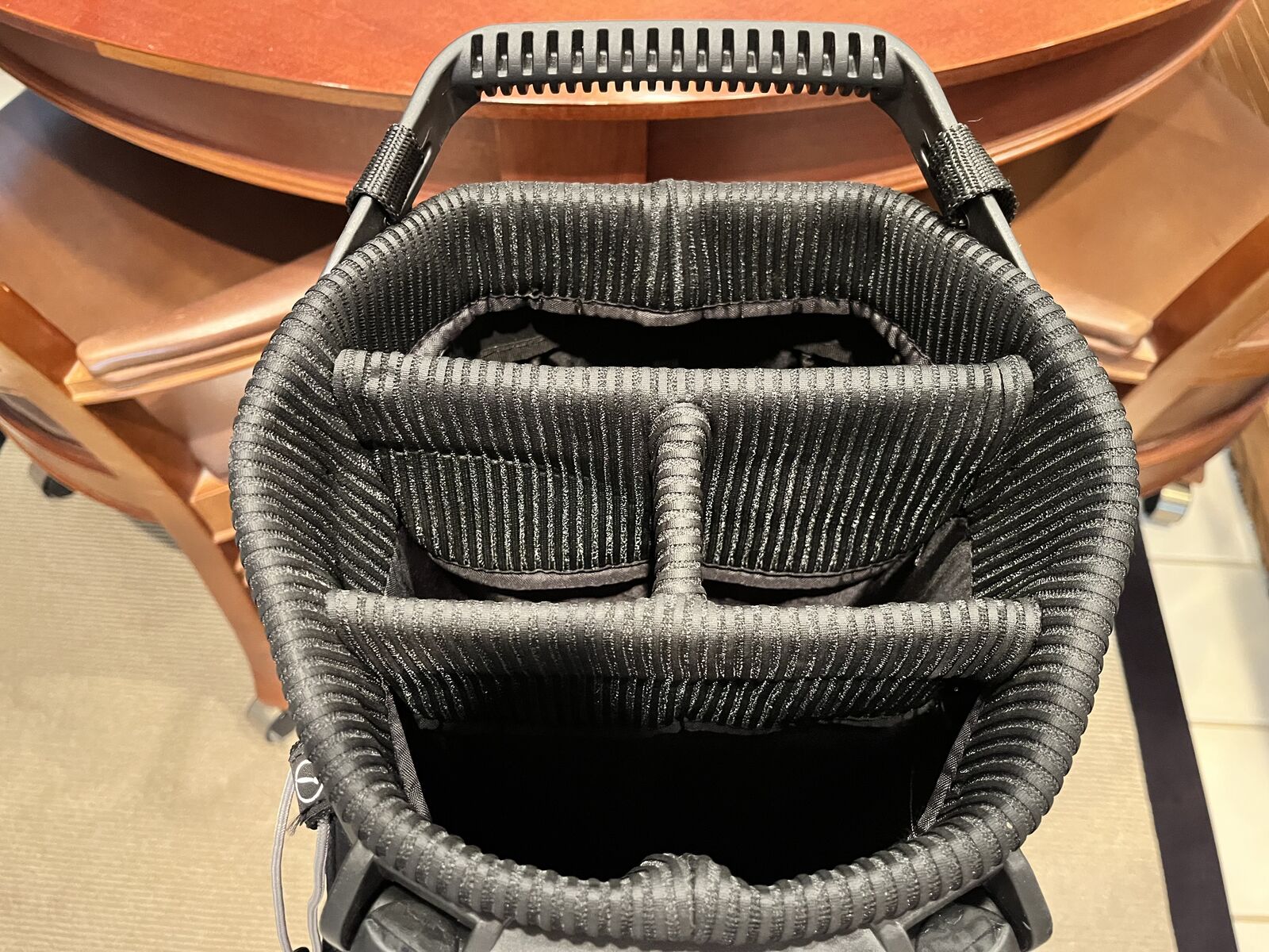 The perfect all around bag. Great for riding carts, push carts, carrying, and range sessions. Full length dividers, no club tangle. Pristine condition, no tears, or stains, and all zippers work perfectly. Not interested in any trades