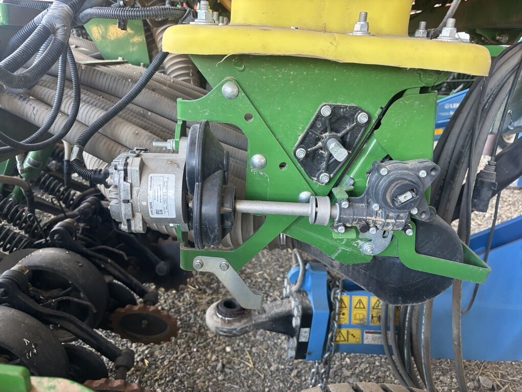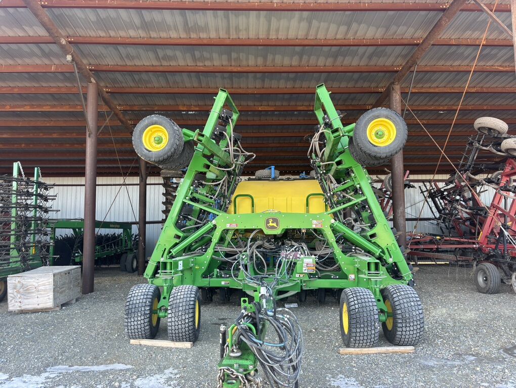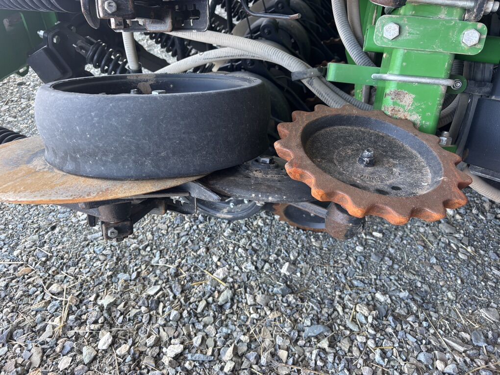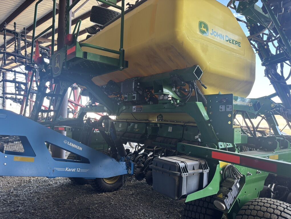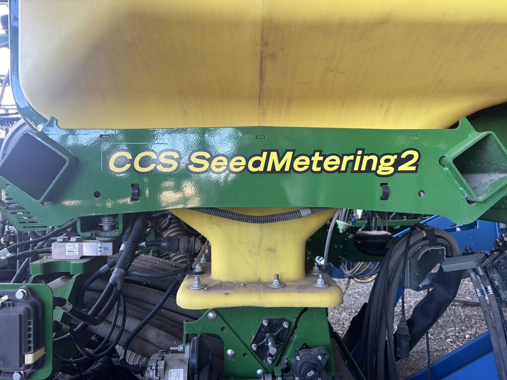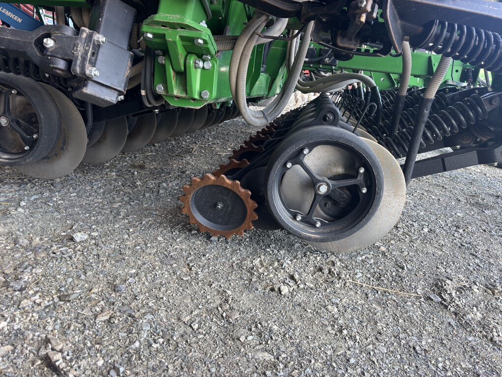 No-till drill. 40’ wide 7.5” spacing. Two rows can be ran independent of each other. Around 7000 acres. Used two seasons. Pro-openers. 4 sections for section control. Seed metering 2. Relative blockage monitoring. 120 bu tank. 4.5” wide gauge depth wheels. 160-400 psi down pressure for excellent no-till results. Spoked gauge wheels. Spiked closing wheels. Scales on tank. Remote intelligent access. Easy to use Active and non-active calibration. Section control ready. Single blower fan. Electronic metering control with alternator included. Set up to run with non-John Deere tractor. 3 sets of meters: small medium and large seed. I planted sizes from Alfalfa to peas. Premium light package. Premium wheels for less compaction. Radar included on unit. Minimal roading. Excellent tire condition. Excellent disc condition. Never used fertilizer. John Deere consistency and quality. Hoses in like new condition. Field ready. Greased before winter. Parked in barn.