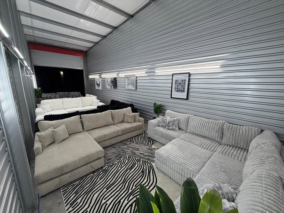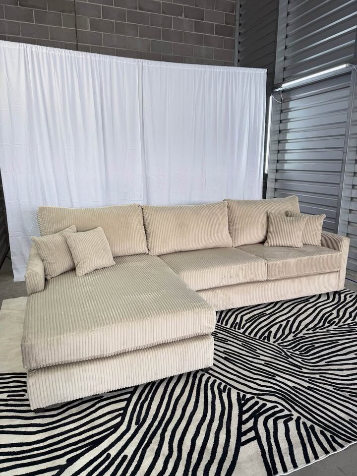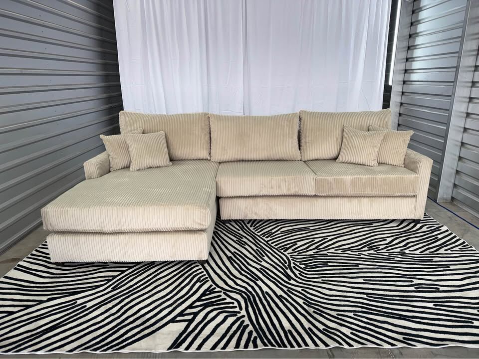 Premium custom sectional with deep seating and ultra-soft ribbed chenille fabric. Oversized comfort with a clean modern look — perfect for living rooms, apartments, or basement setups.