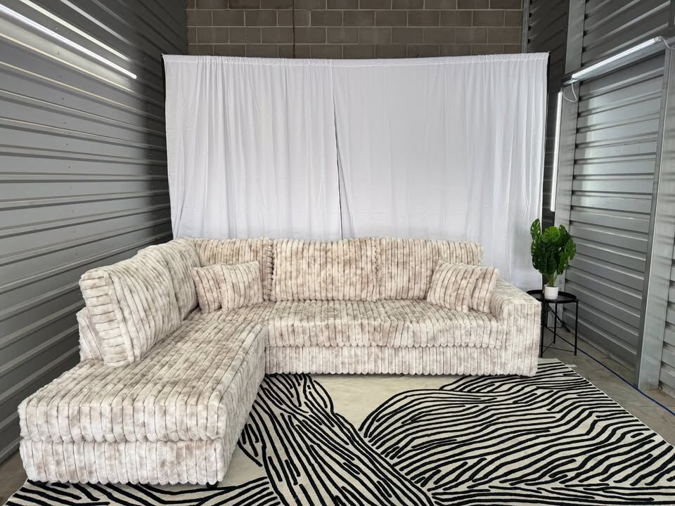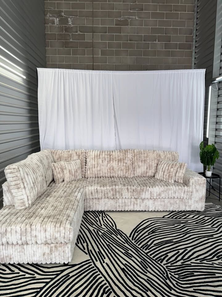 Cozy viral “Minky” style sectional with deep seating and ultra-soft fabric. Modern modular design built for comfort, flexibility, and a high-end look.