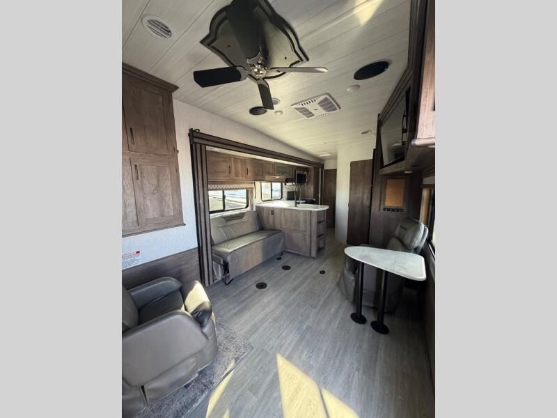 Don't pass up your chance to camp in pure luxury with this Sandstorm toy hauler! Everyone will enjoy a good night's rest with the king-size bed, a flip sofa, and a rear electric bed above the electric pass-through dinette. There are not only dual entry doors to this unit, but also a dual-entry bath for a smooth flow of traffic throughout the entire unit. The front private bedroom features a wardrobe slide as well as wardrobes on either side of the bed for you to keep your clothes neat and tidy. There is even a front exterior storage area to keep your camping gear!