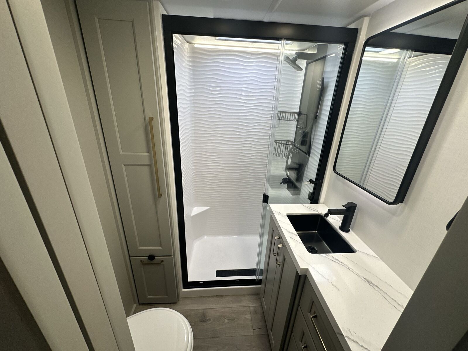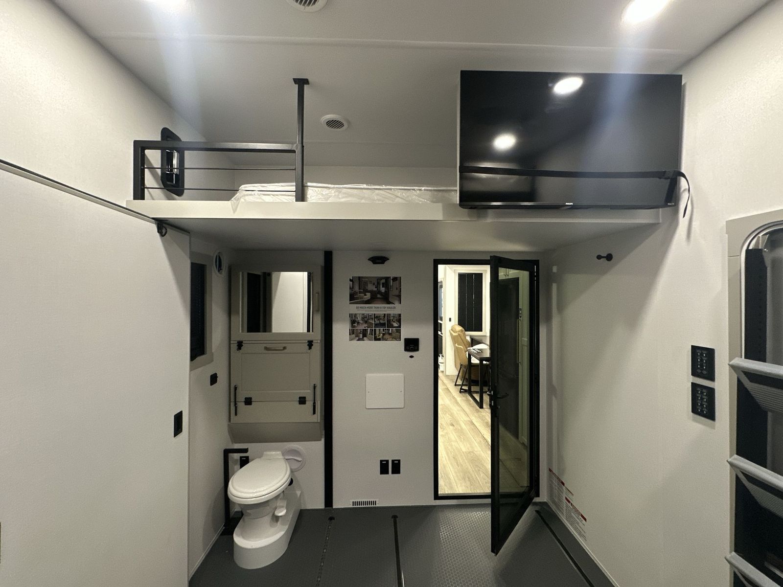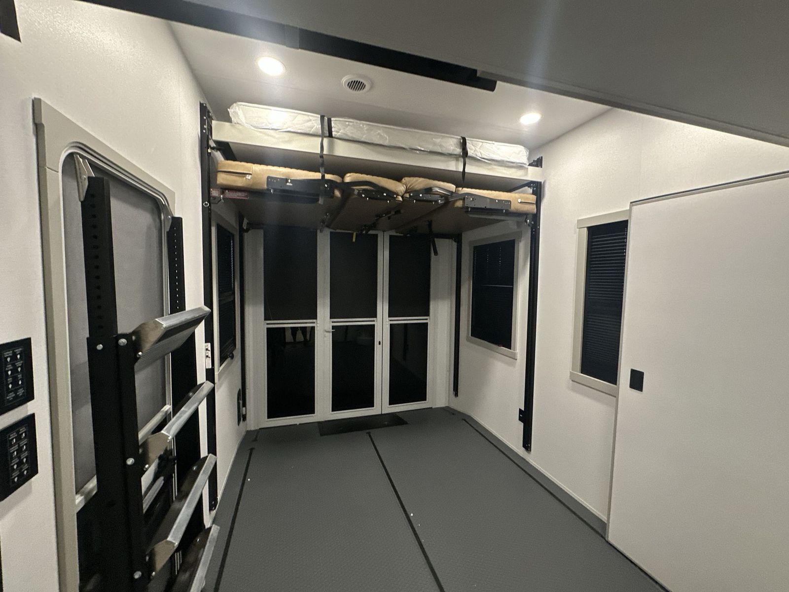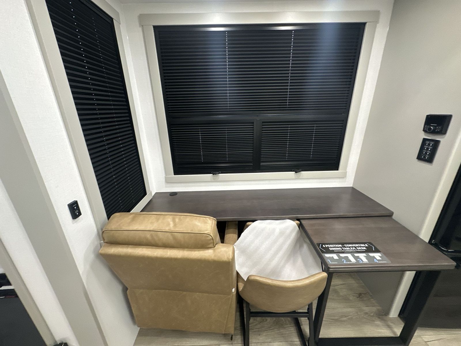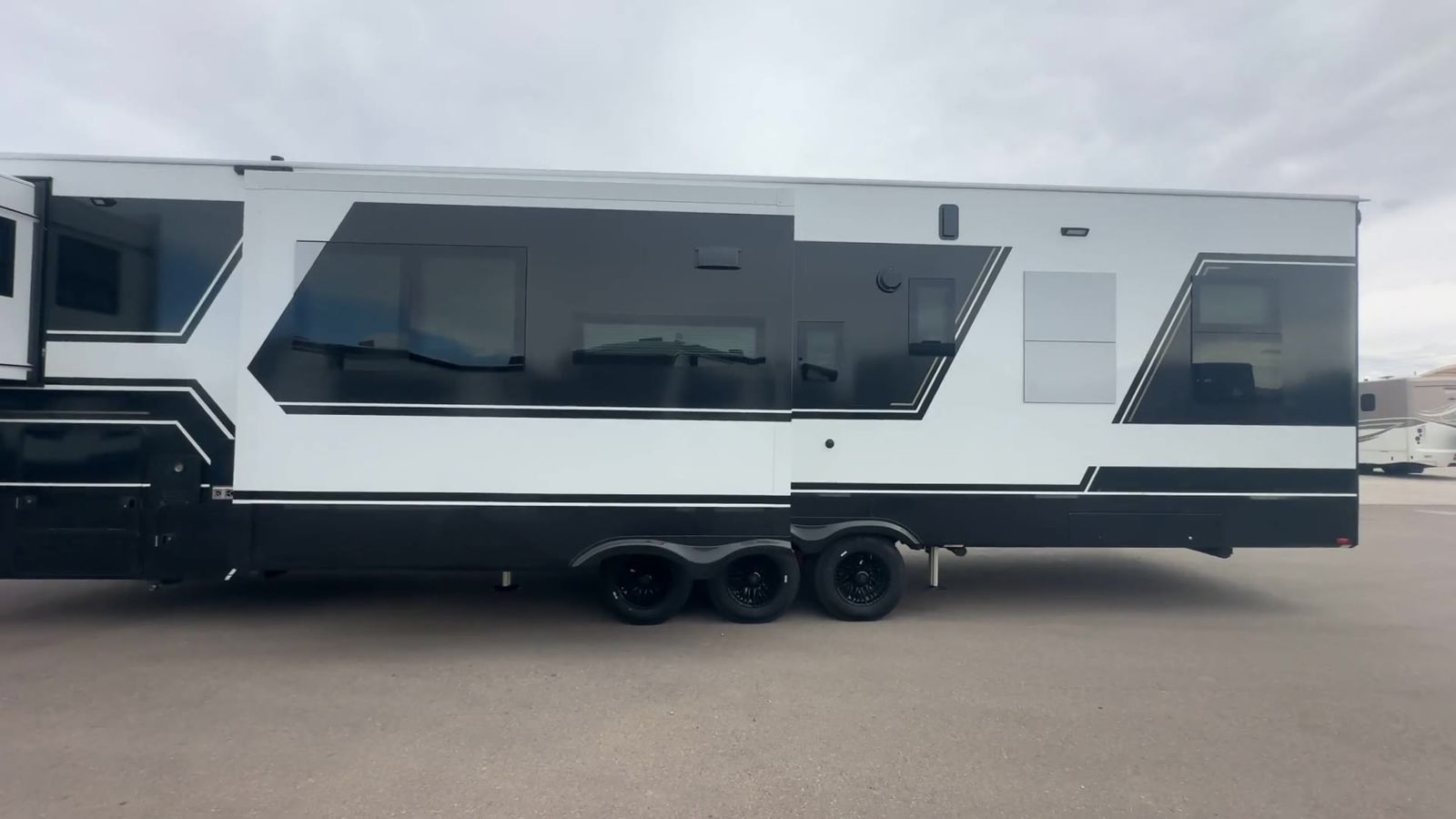 Brinkley Model G toy hauler 3950 highlights: 14' Garage with Loft L-Shaped Sofa 19 Cu. Ft. Refrigerator King Bed Slide Out Pull-Out Trash Bins Walk-In Bedroom Closet Bath and a Half This toy hauler may just be the one you've been looking for! The garage/flex space with fold-away half bath walls will allow you to utilize the garage how you need it, plus there is an adjustable tie-down system, independent dual sofas, plus a loft for storage and a twin bed to sleep more campers! The garage patio with a 1,500 lb. capacity is another feature you are sure to love, especially with its own awning to keep you protected from the elements. Head to the kitchen to prepare meals with a 24" GE oven with a four-burner range, a GE microwave with an air fryer, plus a spacious GE Energy Star 19 cu. ft. refrigerator. The island with two stools will let others visit with you while you cook, and there are even hidden dog bowls. You'll find the convertible dining table/L-desk will be accommodating since it can be used to dine at, and to get some work done. You may just find yourselves spending most of your time on the L-sofa in front of the TV and fireplace. A full bath is up front by the bedroom, and here you'll find neon shower lighting, a residential shower system, and pull-out linen storage to keep towels ready to use. After a day outdoors you'll love nothing more than coming back to your own bedroom with a king bed slide out, TV, a walk-in closet, and many more storage spaces. And we haven't even touched on the exterior features, like the 3-way pass-through storage, four power awnings, an air compressor to fill up tires, and the list goes on and on! With any Model G toy hauler fifth wheel by Brinkley you will enjoy luxurious amenities, tons of storage space, and innovative features that have been developed and tested in the real world. Durable construction includes an industry leading PDI process, an industry best insulation package, and reinforced and walkable slide roofs. Some of the exterior features you'll find are a 3-way pass-through with a multi-functional flip-up bulkhead wall, under I-beam storage, a MAX-Vision reverse lighting system, and a low-maintenance roof to name a few. A Rockford Fosgate audio system comes standard, along with a OneControl app system that lets you control your fifth wheel's functions right from your mobile device. You will find the solar system with a designated storage area to be ultra convenient, plus there is a FlexPower 5500 with a dual fuel inverter generator for all your power needs. Head inside to find a residential interior with Brinkley's CraftSense wood trim construction, floating entrance steps, integrated window screens and insulated blackout blinds, and residential solid surface countertops plus backsplash. You will also enjoy theneon shower lighting and recessed medicine cabinets in the bath, plus motion activated LED bed lights and dual bedside outlets in the bedroom. Choose a Model G toy hauler fifth wheel to experience all the luxury it has to offer!