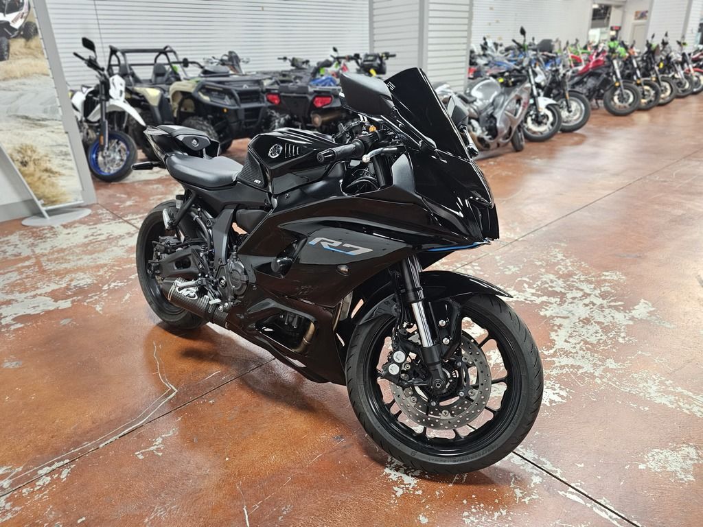 2022 Yamaha YZF-R7 WHERE R WORLD MEETS YOURS A new generation supersport with Yamaha's legendary styling combines an advanced CP2 engine with an ultra-thin and lightweight chassis to provide torquey performance on both the track and the street. Features may include: ENGINE Torquey CP2 Powerplant Yamaha's proven 689cc liquid-cooled, inline 2-cylinder DOHC fuel-injected CP2 engine delivers excellent power and performance throughout the rpm range for an exhilarating ride and a true supersport experience. Its 270-degree crankshaft delivers linear torque for exciting acceleration and limited vibration. Linear Torque with Smooth Acceleration The all-new YZF-R7 boasts a 270-degree crankshaft that delivers a tactile experience of pulse and acceleration with limited vibration. The CP2 engine provides the rider a linear-feeling direction connection from the throttle to the rear wheel. All-New A&S Clutch A first for Yamaha's CP2 platform, the all-new Assist and Slipper clutch reduces clutch lever force providing seamless downshifts and a controlled feeling over the bike's engine braking that helps make the supersport experience more accessible to more riders. For fast and smooth upshifts, an optional Quick Shift System (QSS) is also available on the YZF-R7. CHASSIS/SUSPENSION Supersport Riding Position The carefully developed rider's triangle puts you in a clear supersport riding position. The YZF-R7's racing-inspired cockpit puts you in a comfortable confidence-inspiring position. A new seat, combined with new tank covers featuring deep knee pockets, provides optimal hip and knee positioning. Riders get the freedom to adjust positions while also maintaining a firmly planted feeling in corners plus sturdy body hold under braking. Separate clip-on handlebars are set in relation to the riders hips and footpeg positions for an aggressive rider position. Inverted Front Fork The YZF-R7 features a preload, rebound and compression adjustable inverted KYB 41mm front fork featuring optimized spring rates and damping settings for an excellent front-end feel during cornering and braking. ELECTRONICS Digital LCD Instrumentation A new full-LCD instrument panel informs the rider of gear position, fuel capacity, real time and average fuel economy, water temp, clock and more—all presented in a high-contrast display. ADDITIONAL Adaptive Bi-Functional LED Headlight The iconic R-Series M-shaped intake duct and twin-eye look compliments the all-new YZF-R7 along with an adaptive bi-functional LED headlight.