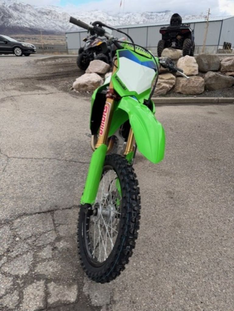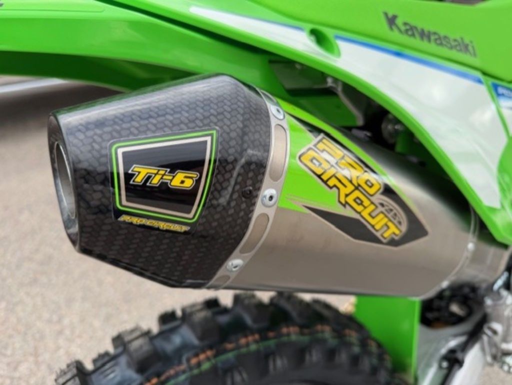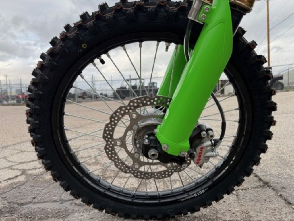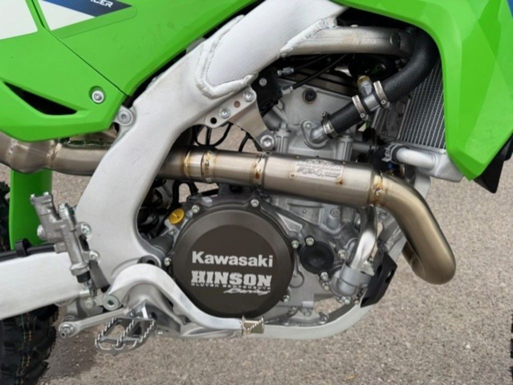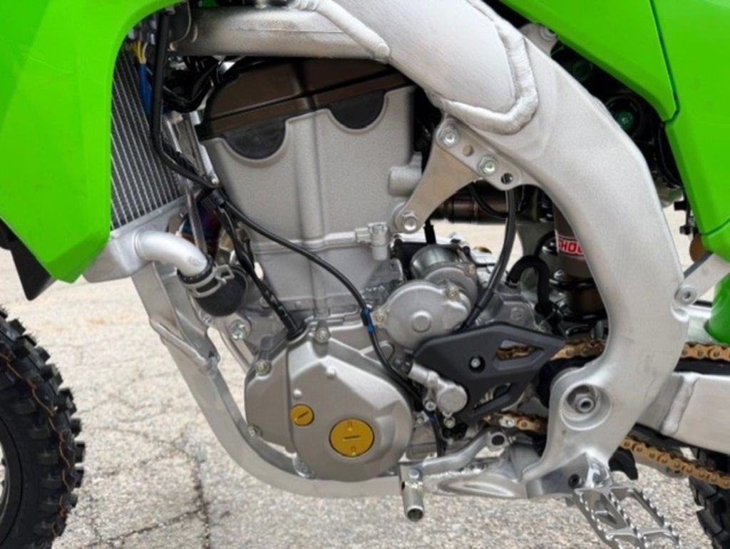 With agile handling, a strong and lightweight chassis, and ERGO-FIT® adjustable components, you’ll experience an unmatched race-winning advantage on the KX™450SR motorcycle. Stand out from the crowd with factory-edition styling, featuring Monster Energy® Kawasaki race team-inspired graphics, Lime Green handlebar pad, Metallic Magnesium Gold cylinder head cover, and a Hinson clutch cover.