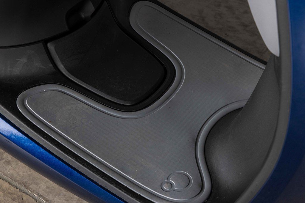 This scooter has a spacious weather-resistant underseat storage area that can accommodate a helmet, books, or groceries. A lock secures the storage area for added security.