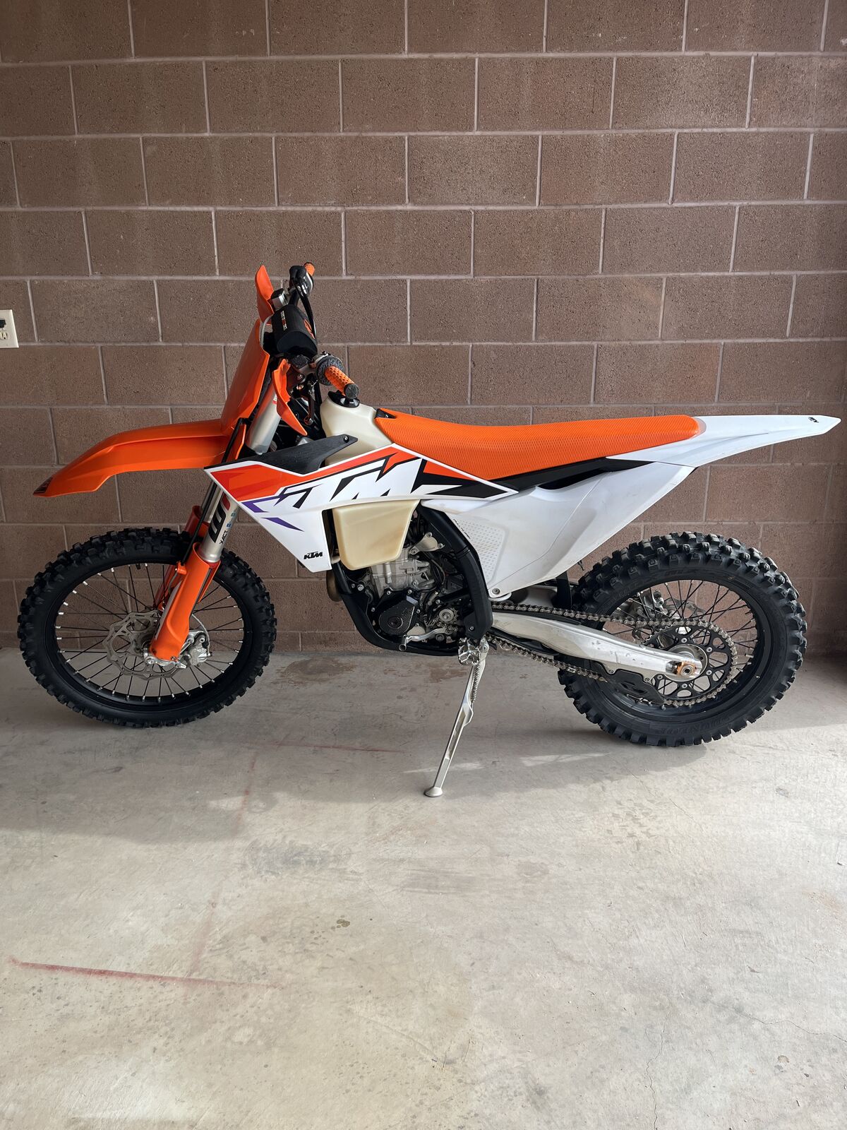 This has been such an awesome bike. It has 103 hours on it but has been well taken care of. The oil has been changed and the air filter cleaned every 10-15 hours. It has an FMF pipe but I still have the factory pipe. I also have a spark arrestor for the FMF pipe. The bike comes with an extra air filter and a couple extra oil filters. The tires are in pretty good shape and have a ton of life left. I put a new piston in the bike at 95 hours and the bike is running great. I am just selling the bike to get something newer. I am in and out of classes so a Text would work best.