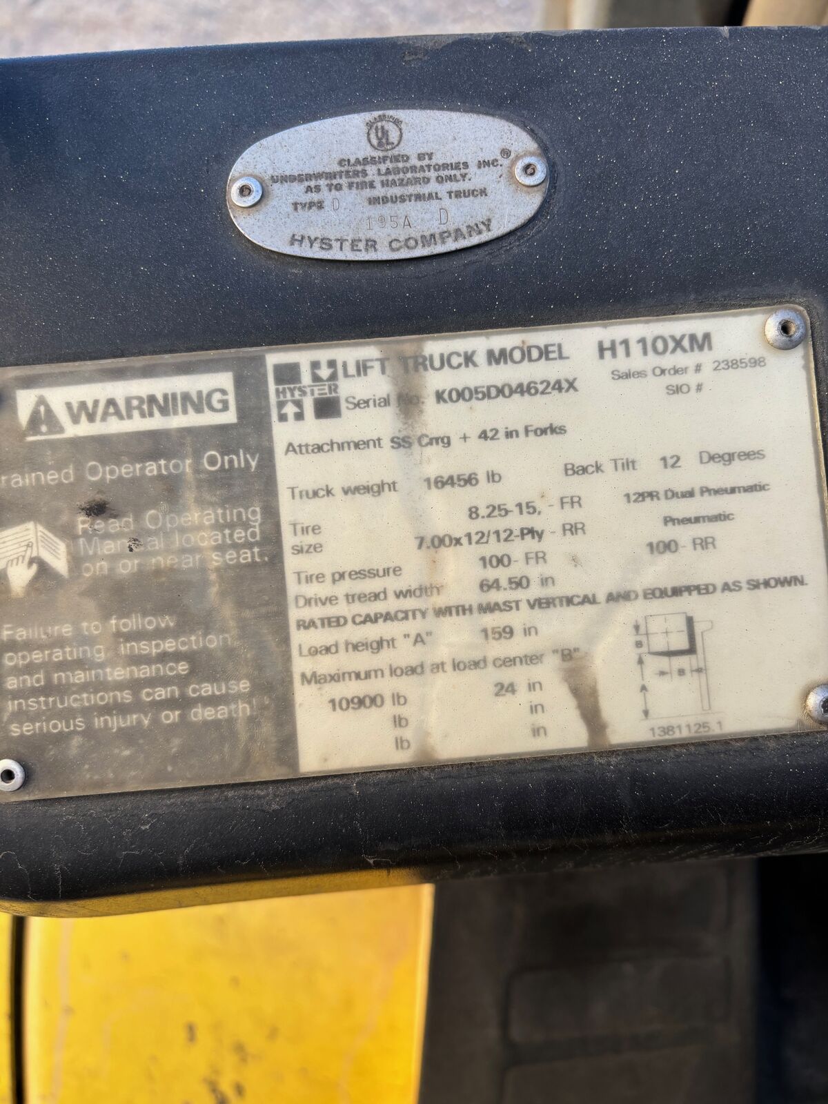 2000 Hyster 110 Dually Forklift