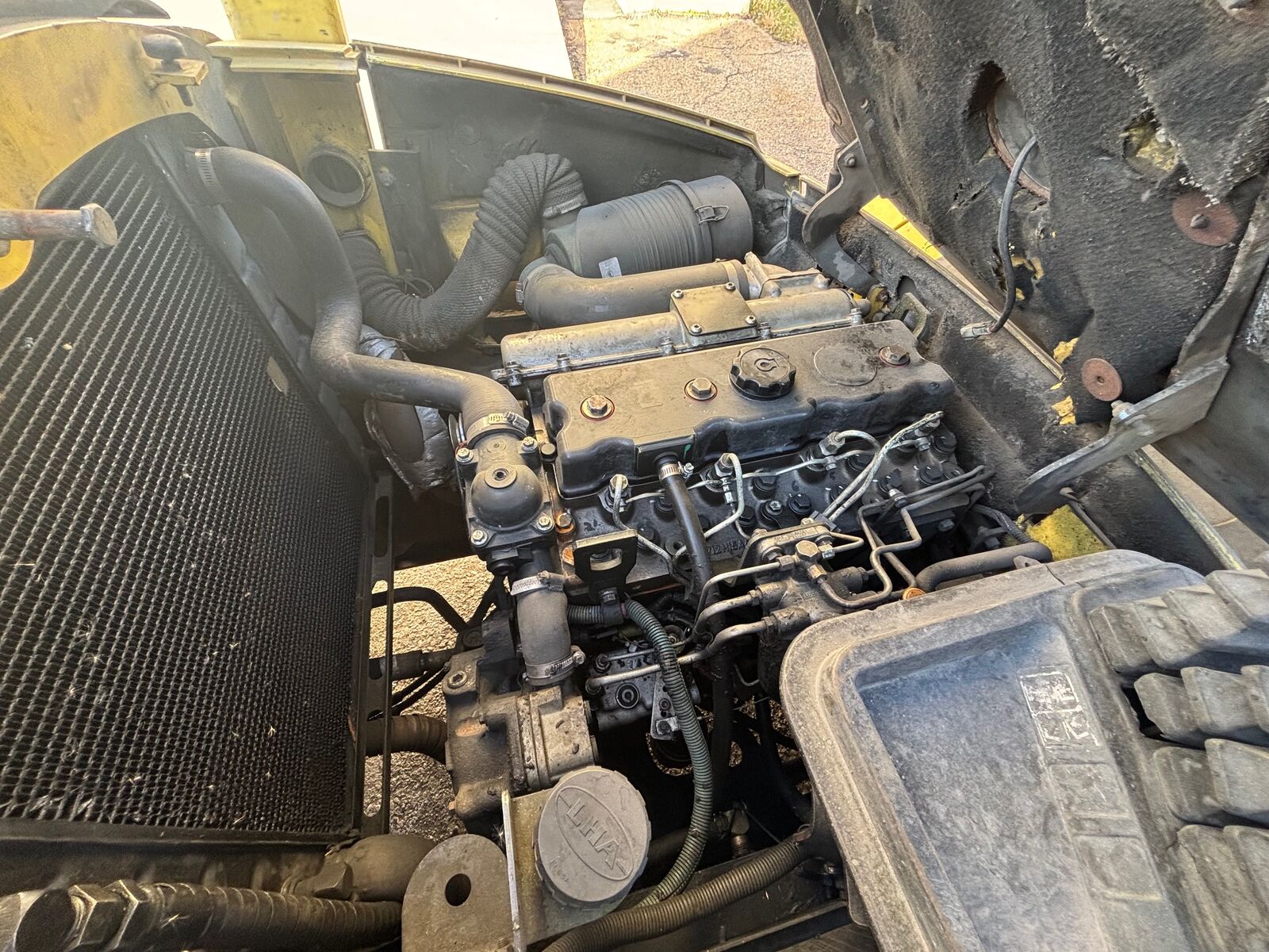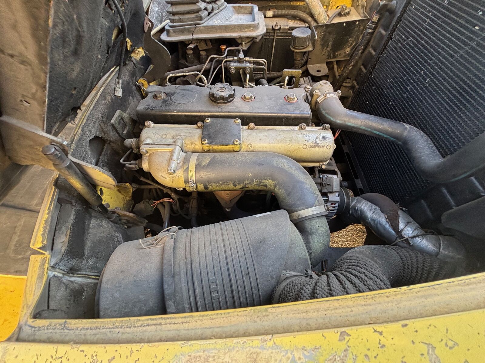 Diesel fuel. 10,900 capacity rating. Engine rebuilt several years ago and recently had the head rebuilt. Engine is strong but transmission is shot. Will need jumpstart or new batteries as it has been sitting.
