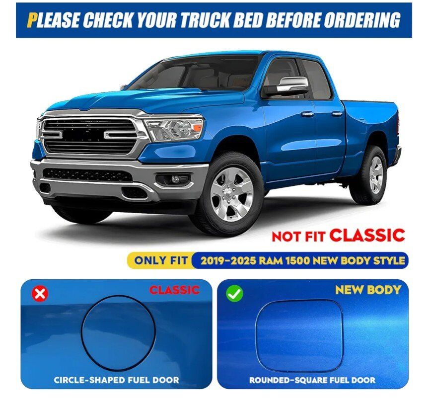 Compatibility Designed for the 2019–2023 Ram 1500 (New Body Style) with a 6.4 ft / 76 in Fleetside bed. Not compatible with Classic models, trucks equipped with the Utility Track System, RamBox, or the Multi‑Function (split) tailgate.
