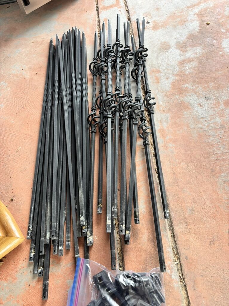 VenmoApproximately 16’ of material. I think it might be oak. Rod iron balusters, base and shoes, hand rails and four posts.