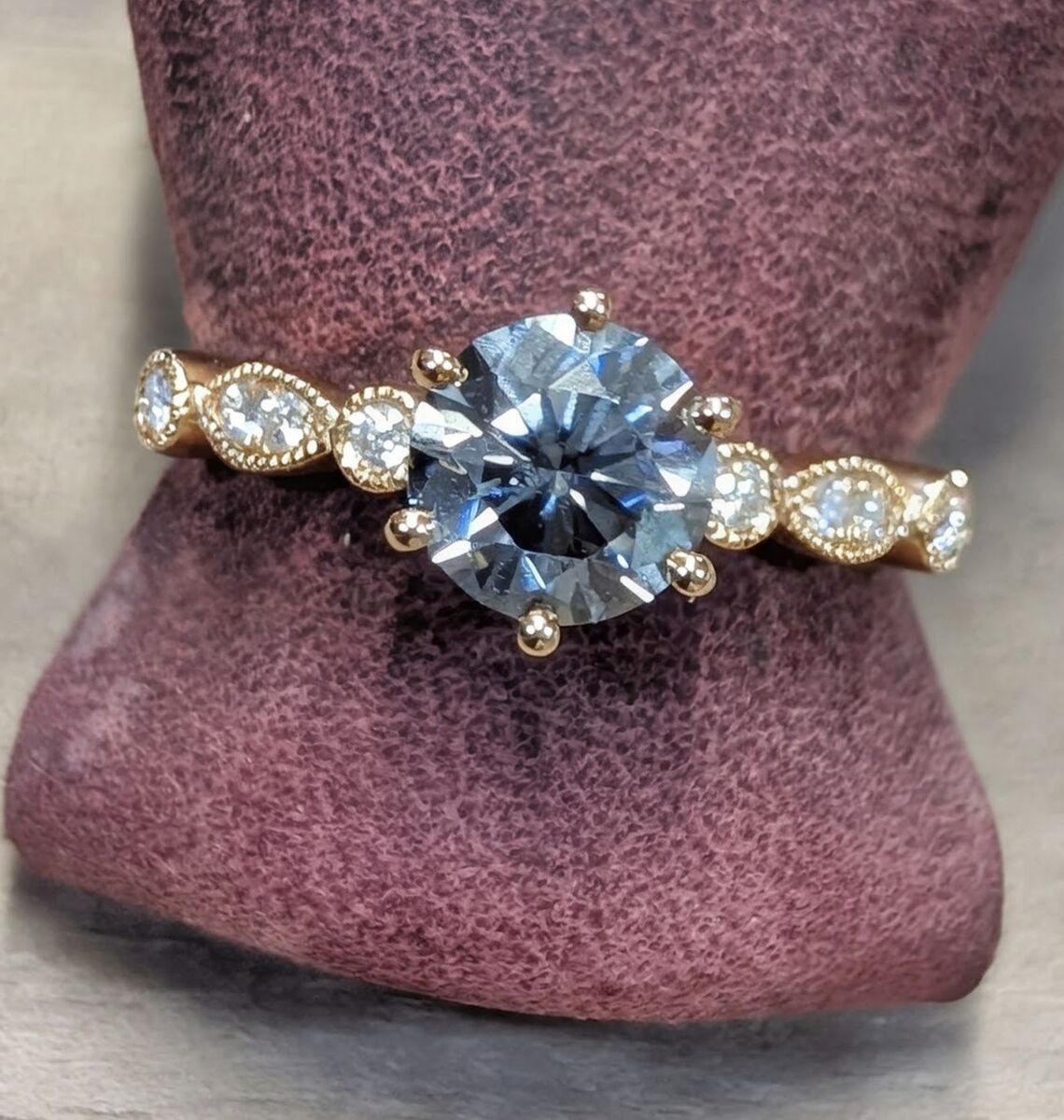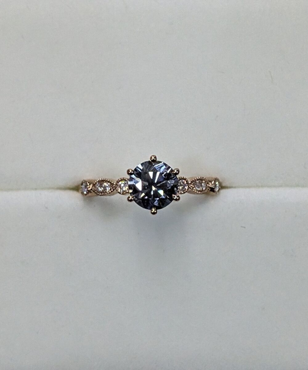 VenmoBlue-Grey Moissanite Engagement Ring 10K Solid Rose Gold Wedding Ring Unique Milgrain Ring For Women Bridal Anniversary Gift