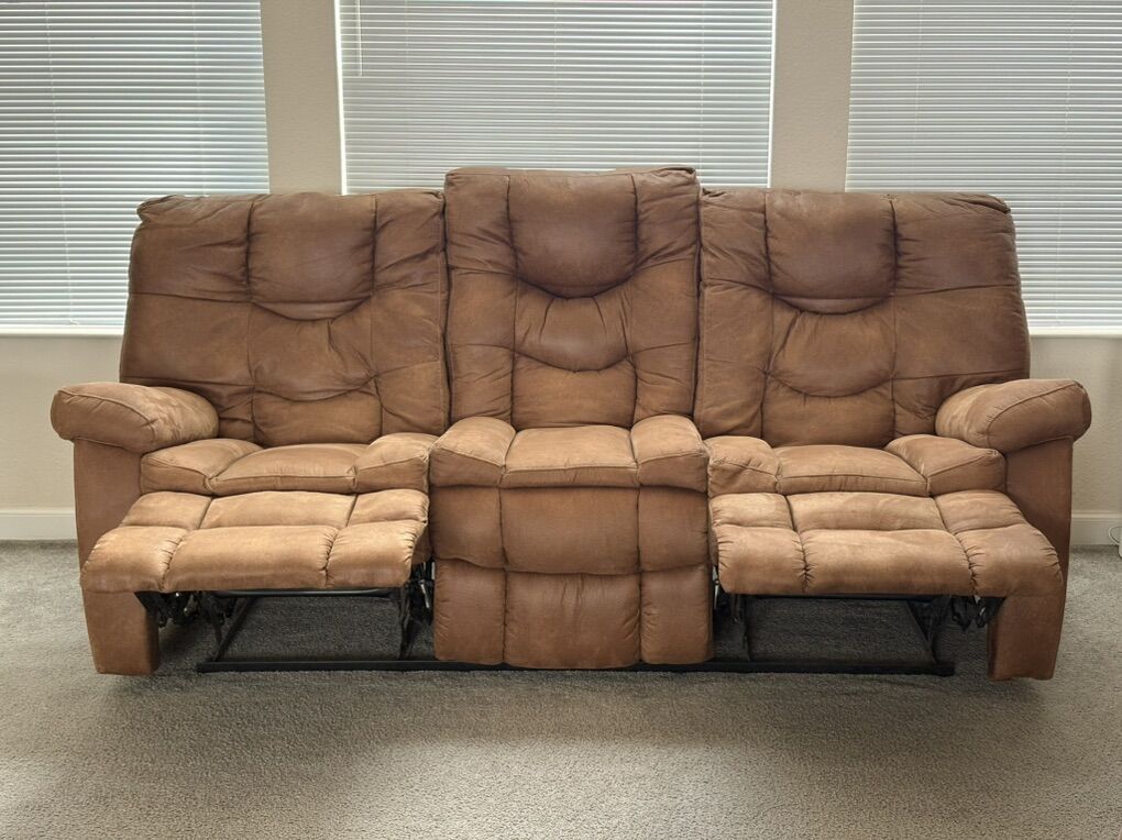 VenmoComfy reclining sofa, love seat and recliner. Suede like micro fiber excellent condition. Will deliver for an additional fee.