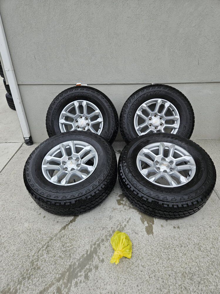 brand new set wheels and tires 18 inch coming from my 2025 chevy tahoe fit ,tahoe,suburban,silverado,sierra, yukon escalade, and new ram,coming with lugs nuts and tpms sensors,only 50 miles on them, ready to roll $1100 cash or venmo call or tex 385 495 1119