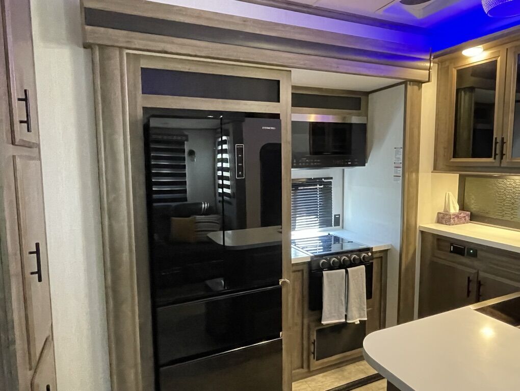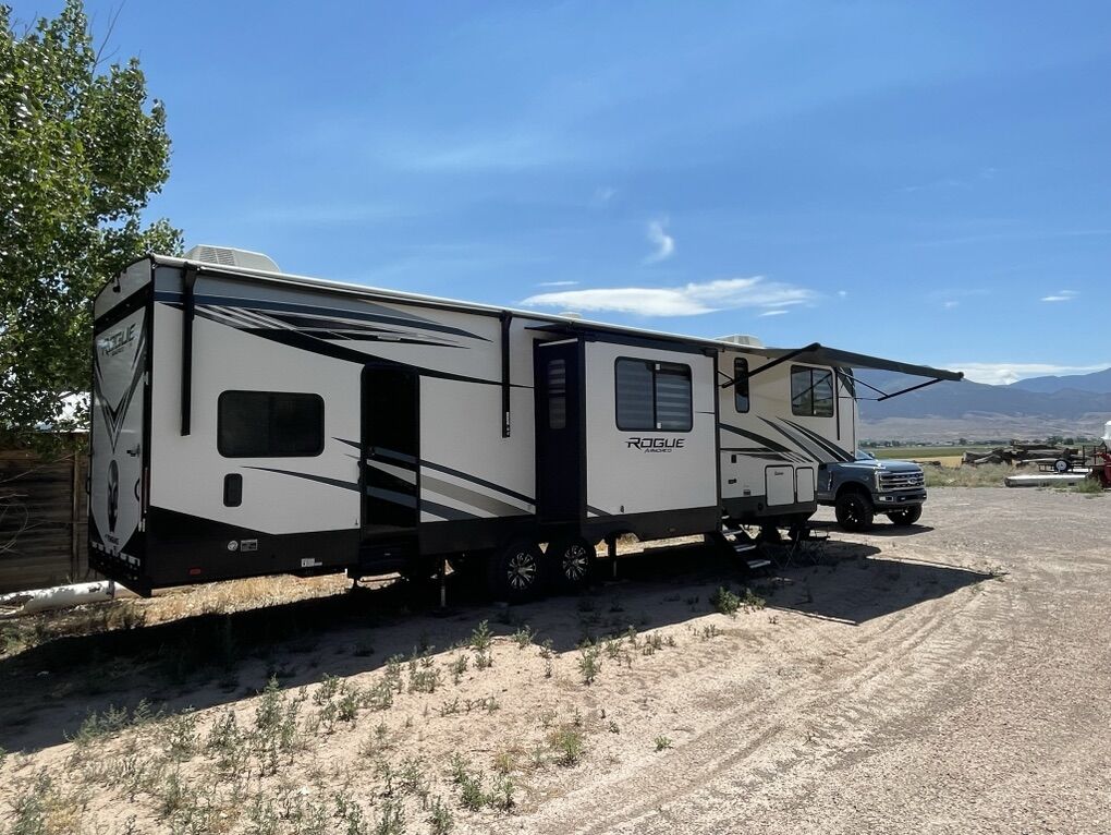 2022 Rogue. If you want a quality built RV with beautiful lay out and all the upgrades this is the trailer. We have babied this unit no shoes worn inside. This will sleep 9 people comfortably. Has a large front room with a slide out. A large closet and plenty of storage in the master suite. The shower has plenty of room to move around and closed off with two door leading in. The kitchen is stunning with plenty of lighting and upgraded appliances double door fridge. Tons of cabinet space. A conventional oven microwave and gas stove. It’s pre plumbed for a washer and dryer. Has a full bath in the garage. 2 ac units. It’s powered by a 5500 watt Yamaha inverter generator. Has two entry doors and a 13 foot garage. We haul a Polaris RXR XP4 turbo with ease. Has rear patio set up as well.