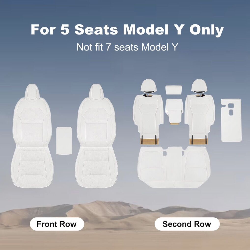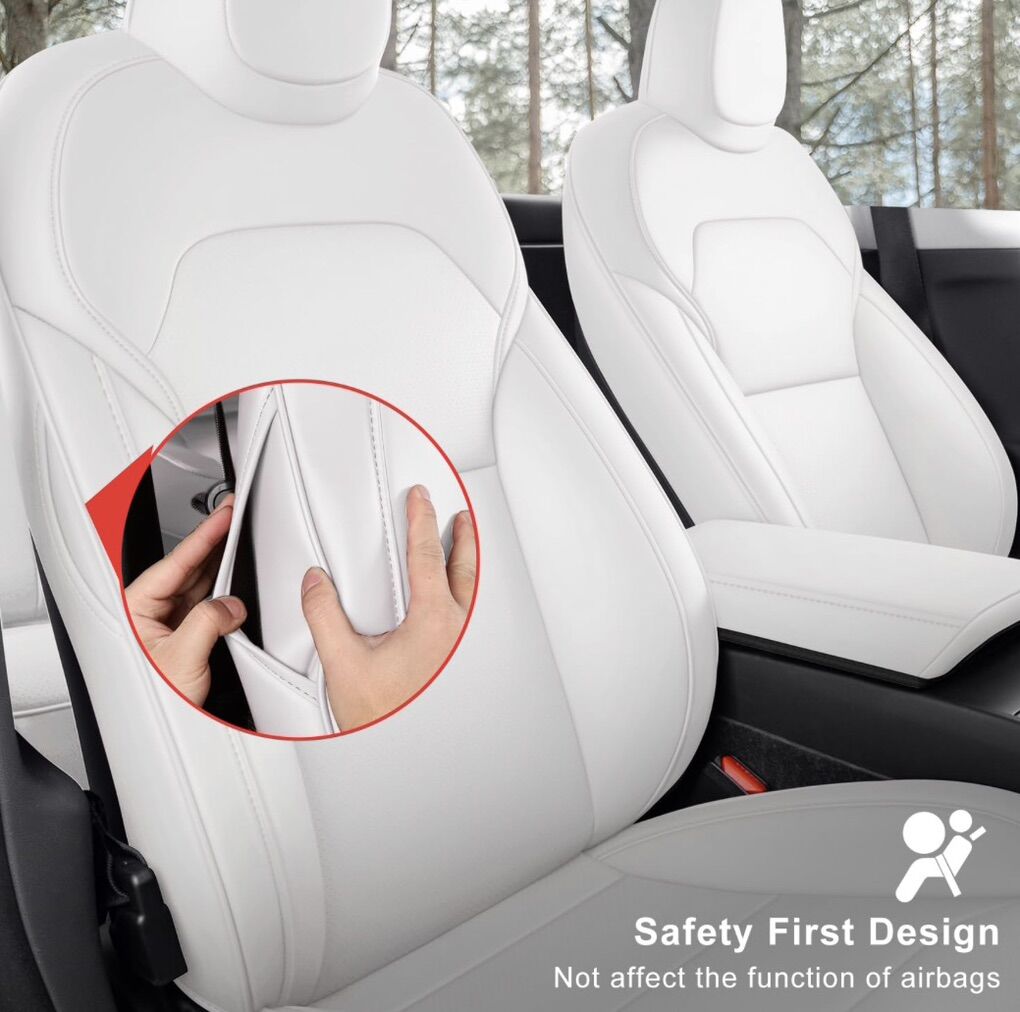 ZelleBrand new Wekar Car Seat Covers for New 2025 Tesla Model Y Juniper Nappa Leather Car Interior Seat Airbag Compatible Cushion Cover Full Set Custom Fit 2025-2026, Nappa White