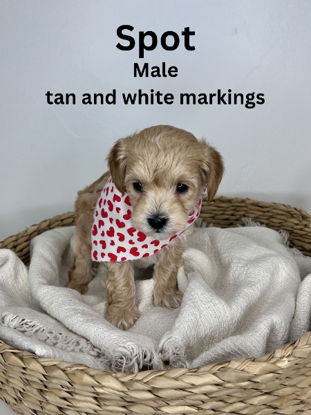 Spot - Tan male with white markings, including a dot on his head. This guy is a good average all-around. Medium size and temperment.
