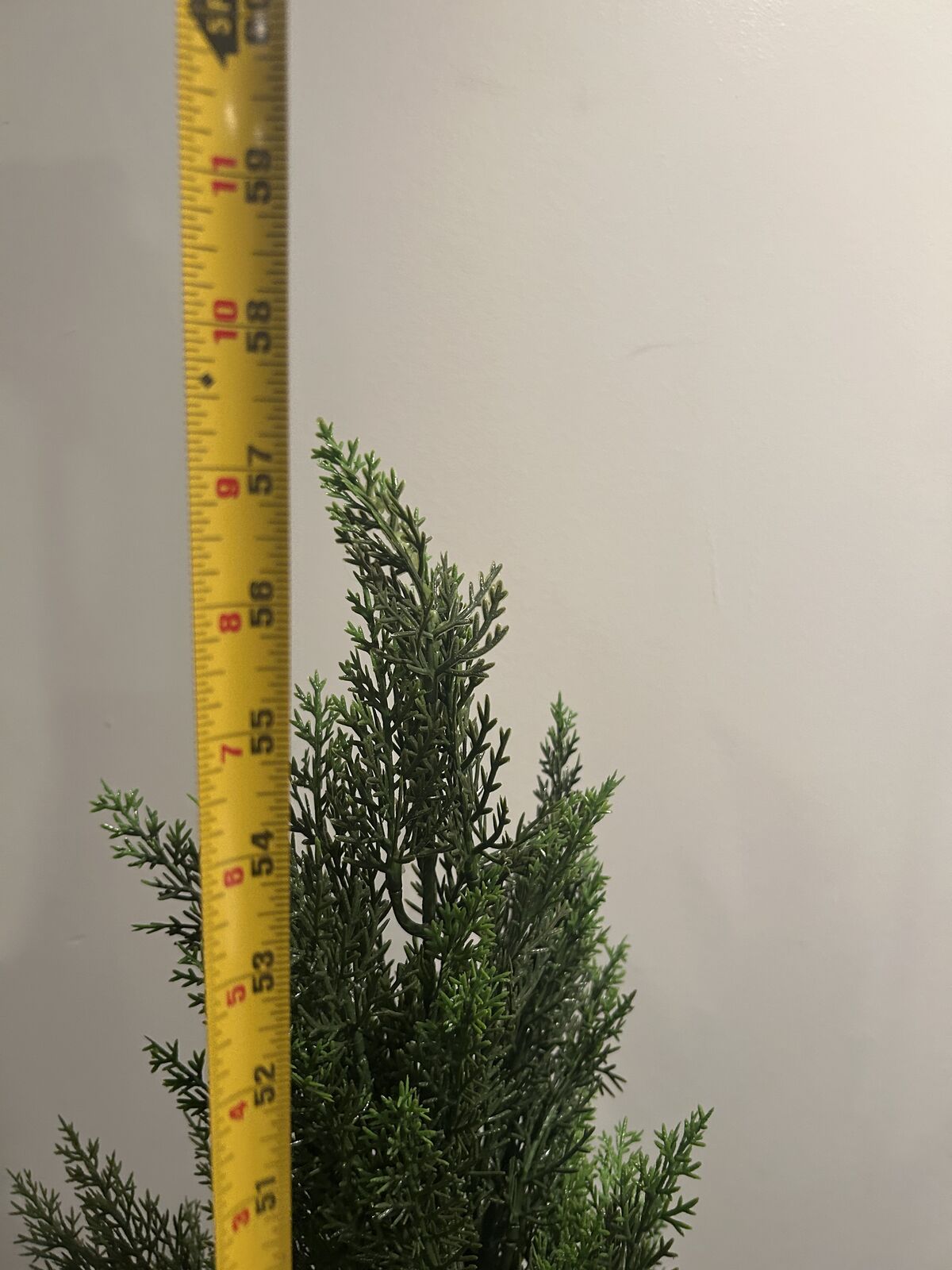 ZelleSet of 2 brand new artificial cedar trees in black pots. Perfect height and shape for enhancing front porches, entryways, patios, back decks, living rooms, offices, sunrooms, or covered outdoor spaces. Adds instant greenery and a fresh, evergreen look year-round. Great for seasonal decor, home staging, or everyday style upgrade.
