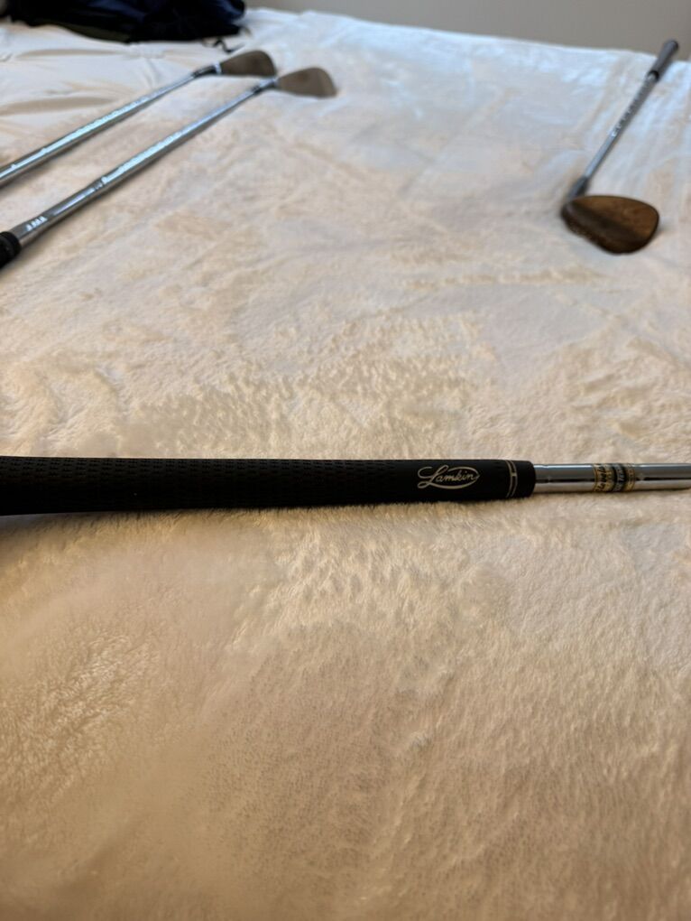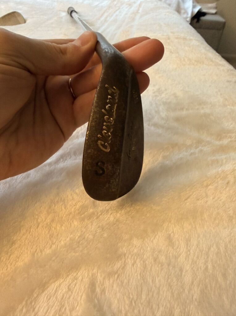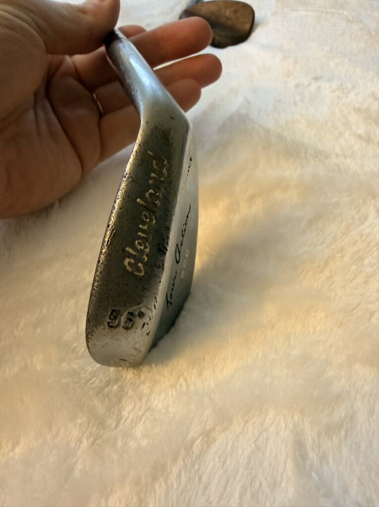 $25-Cleveland 56* Tour Action Reg 588 sand wedge with the RTG forged head. The bounce is likely a 6* or 8* as that was pretty standard then. Besides a mild steel or oil-can Vokey maybe, you will not find a better performing, feeling or more classic wedge. This one is perfectly rusted all over and has the original True Temper/Cleveland wedge shaft and brand new Winn grip. If you prefer, with about 20 mins of work, this guy would shine up very nicely. I gamed it once during this bonus winter golf season we are having and the guys I was with complimented its looks, asked to hit it and both loved it. I didn’t think to sell it to them mid-round! I have a mild steel Vokey we can compare and contrast so you see and feel what I am trying to describe. Very, very cool club!!!