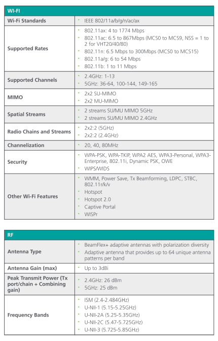ApplePayThe Access Networks A550 is an entry-level, dual-band Wi-Fi 6 (802.11ax) indoor access point designed for high-performance, medium-density residential or small commercial networks. It supports 2x2:2 spatial streams, peak data rates of 1774 Mbps, and up to 512 clients, utilizing 2.5GbE Ethernet for fast backhaul.