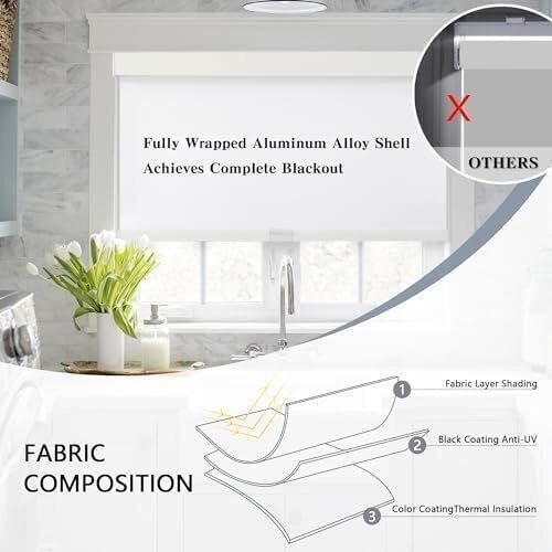 Multi-Functional Design: Our roller shade isn't just about blocking light; it's engineered for versatility. With a heat insulation coating integrated into the fabric, it offers superior light blocking, UV protection, and thermal insulation. Keep your home comfortable year-round while reducing energy costs and maintaining privacy.