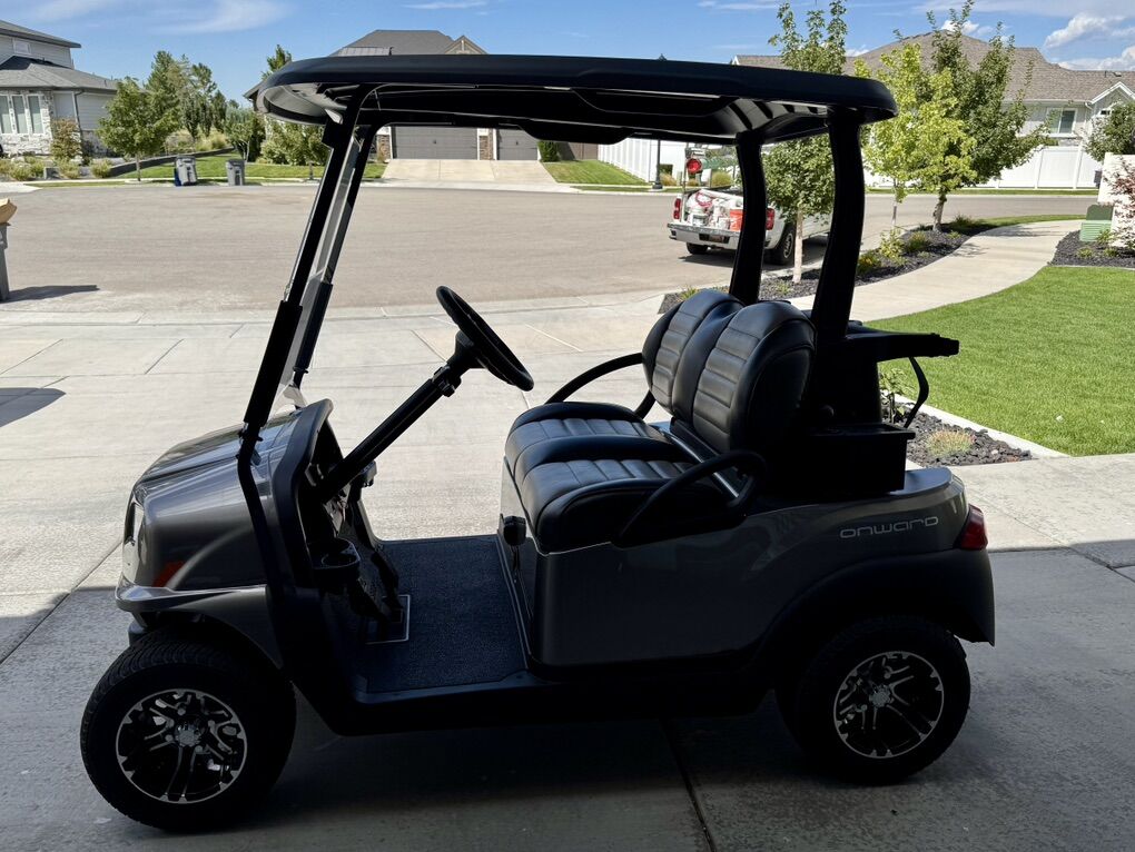 Features & Upgrades: • Black/grey premium seats • Windshield • Built-in cooler • Ball washer This cart has been gently used and is in great shape. Perfect for the golf course or cruising the neighborhood. It is a little dirty right now from being picked up and taken to the shop and brought back. I haven’t had the time to go out and wash it.