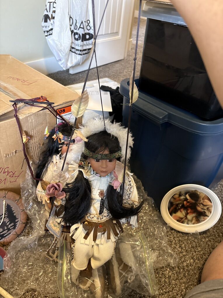 Over 20 years old but in excellent condition They were wrapped up and stored in a tote There is two dolls that you can hang from ceiling , they sit on a swing Hatchet , plate and other decor you see in photos Message me if interested located in Murray