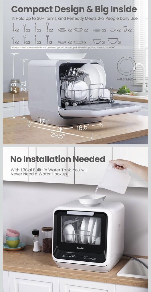 ApplePayNEW Comfee’ 16.5” White Countertop Dishwasher – Open Box