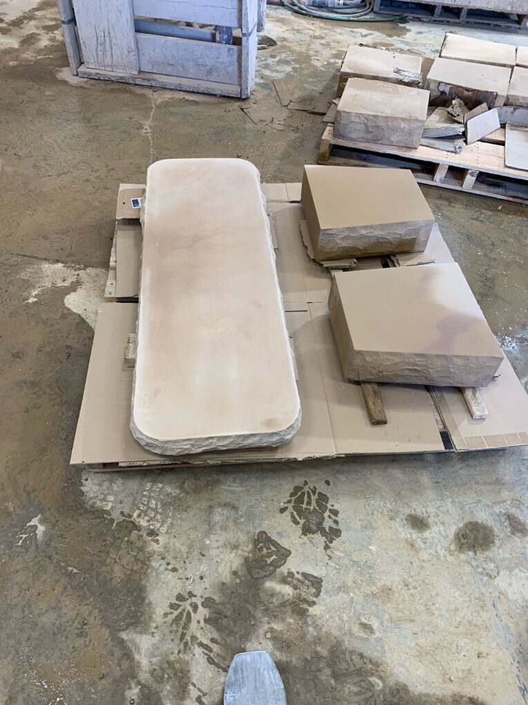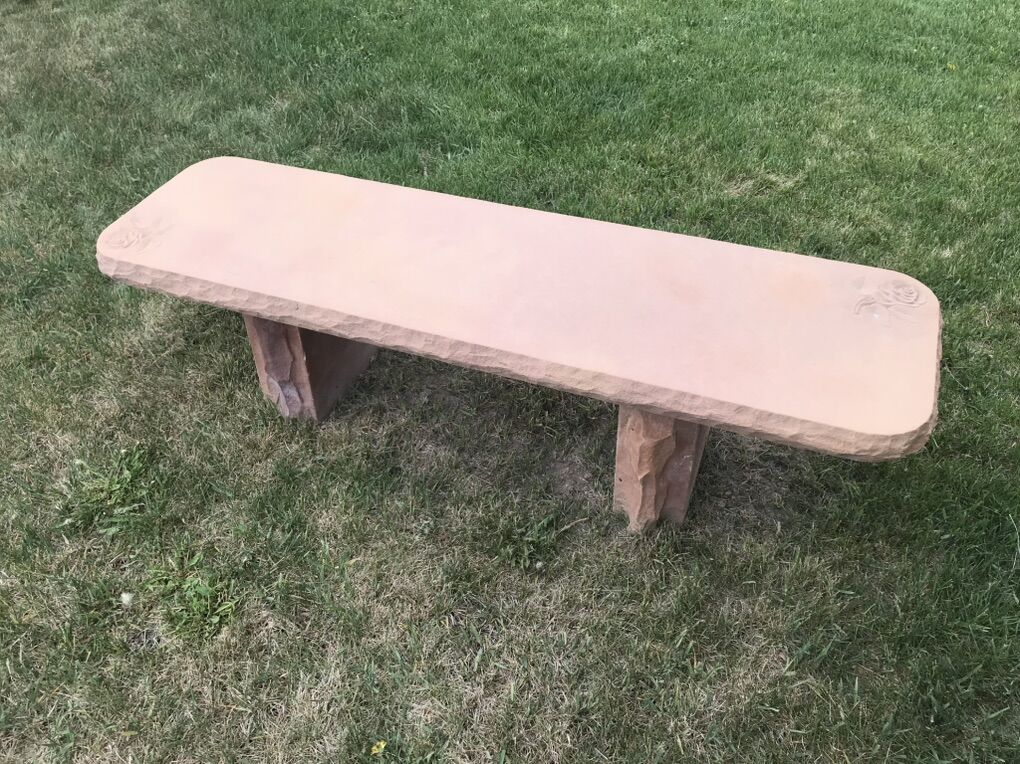 Our beautiful, all natural, Utah sandstone benches. A perfect add-on to any yard, available in our buff, pink, red, tan, and grey colors.