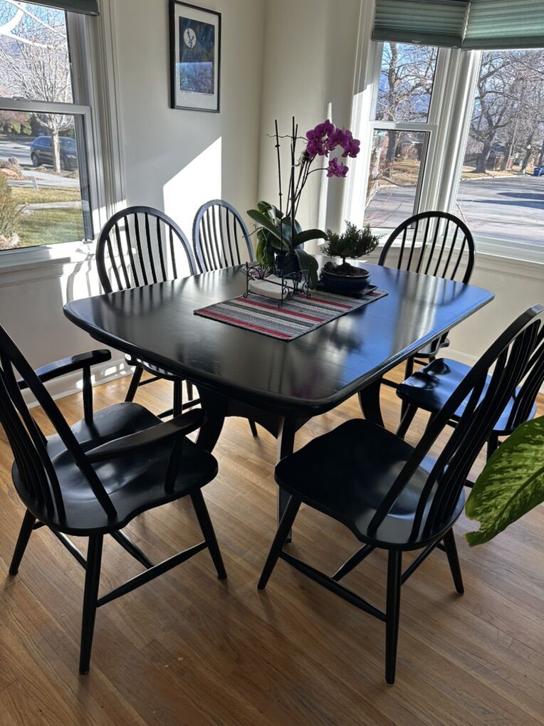 ZelleDining table. Wood, handmade by the Amish. Extends with insert that is kept inside the table. 6 chairs. $800