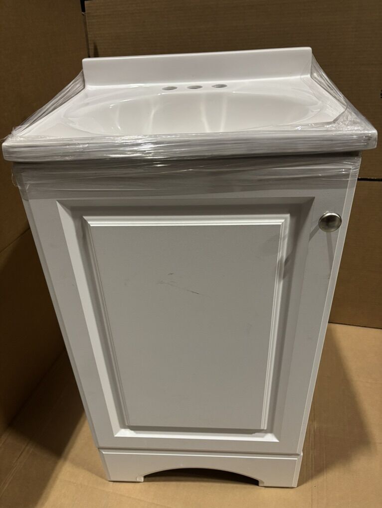 Zelle19” single sink white bath vanity with cultured marble top. 17.99”x32.13”x16.28”