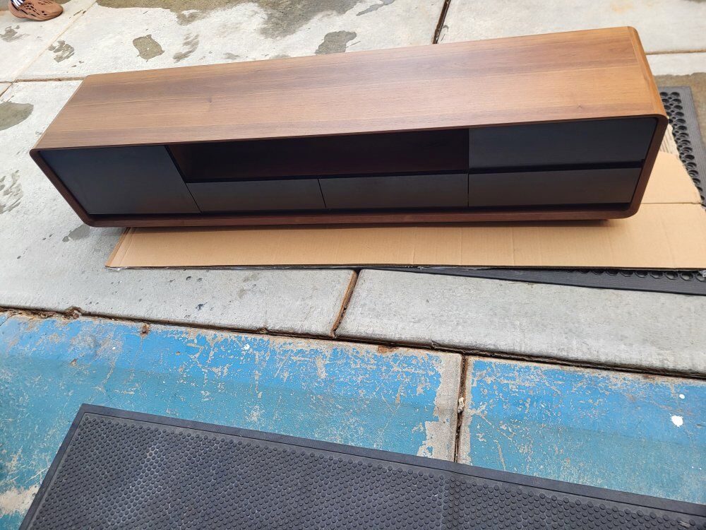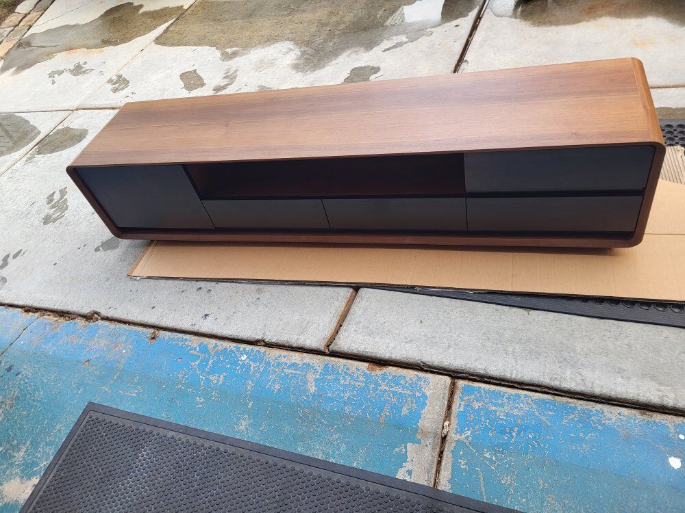 PoVision* Luxury Walnut Modern TV Stand ***w/LED Lights **** Slow Close Drawers Walnut Wood Warm Lights 70"L 16"W 16"H Brand New & Assembled