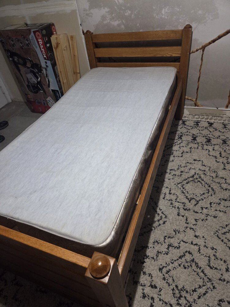 wood Twin bed frame with box spring and mattress $40