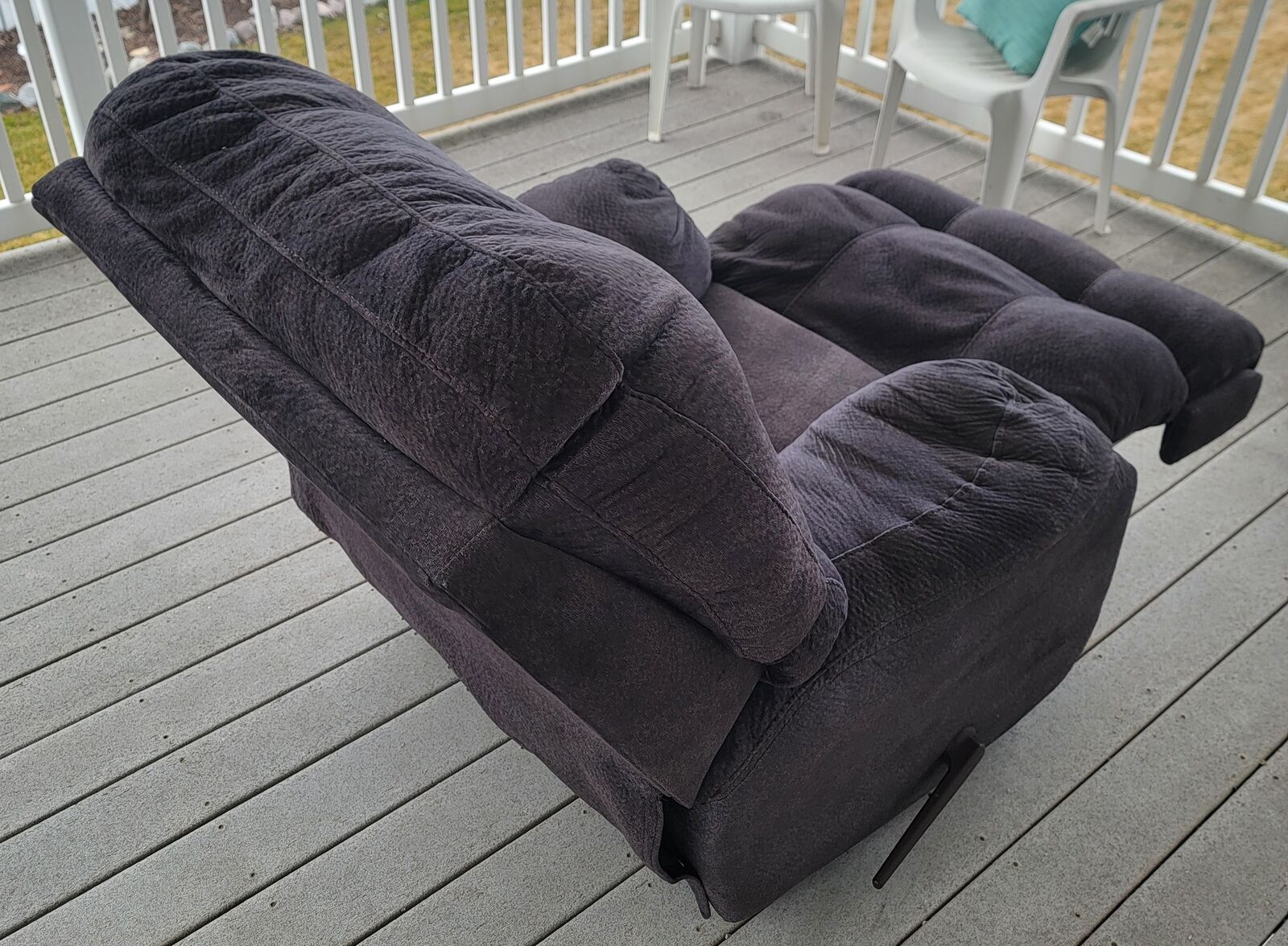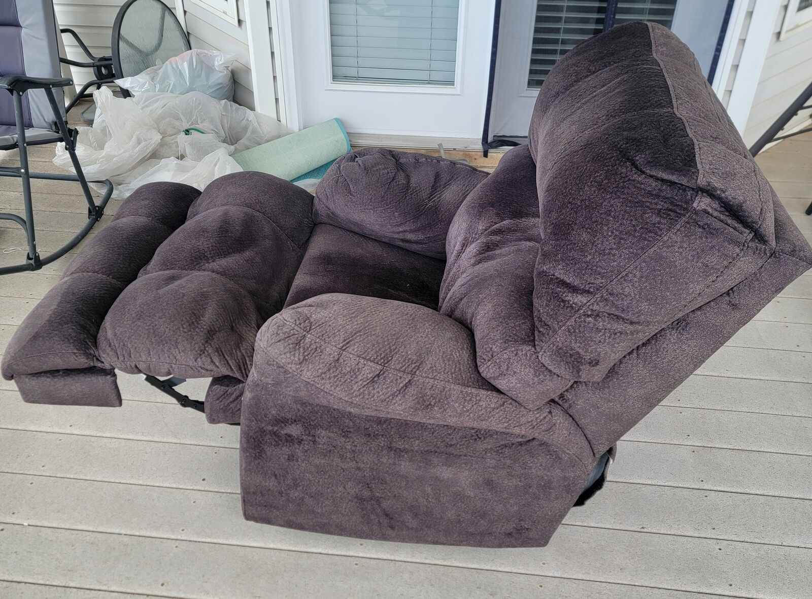 Nice and comfortable, overstuffed rocker recliner (doesn't rock when reclined). $50 or best offer. Text 801-663-3346