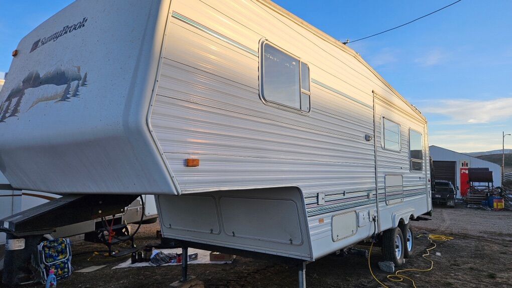 Venmo27ft 5th Wheel Great Trailer for camping or live in 1998 Sunnybrook very well built 1 Large slide out. Excellent shape for its age always stored in a shed since we have had it, we are the 2nd owners Very clean Used last Summer Everything works.
