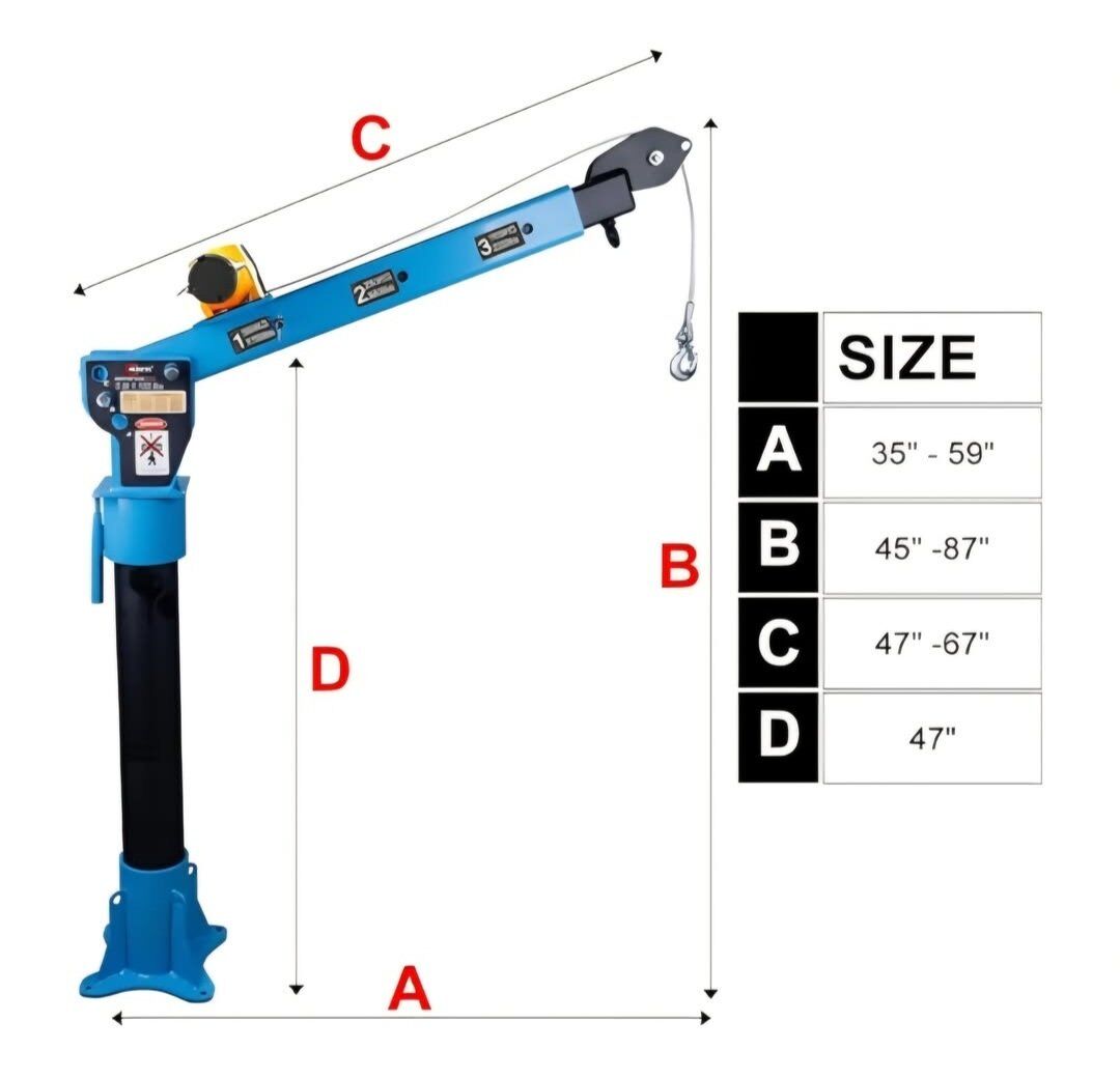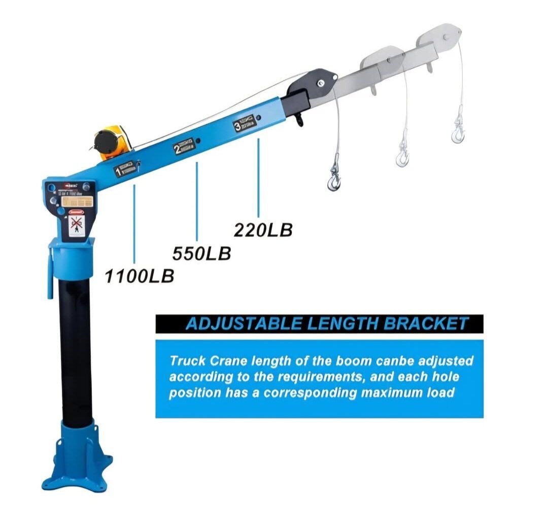 Pismire 1100lb Folding Truck Jib Crane with 3500lb 12V Electric Winch - 360° Swivel, Dual Remote (Infrared + Wired), Painted Steel for Pickup Trucks,Blue