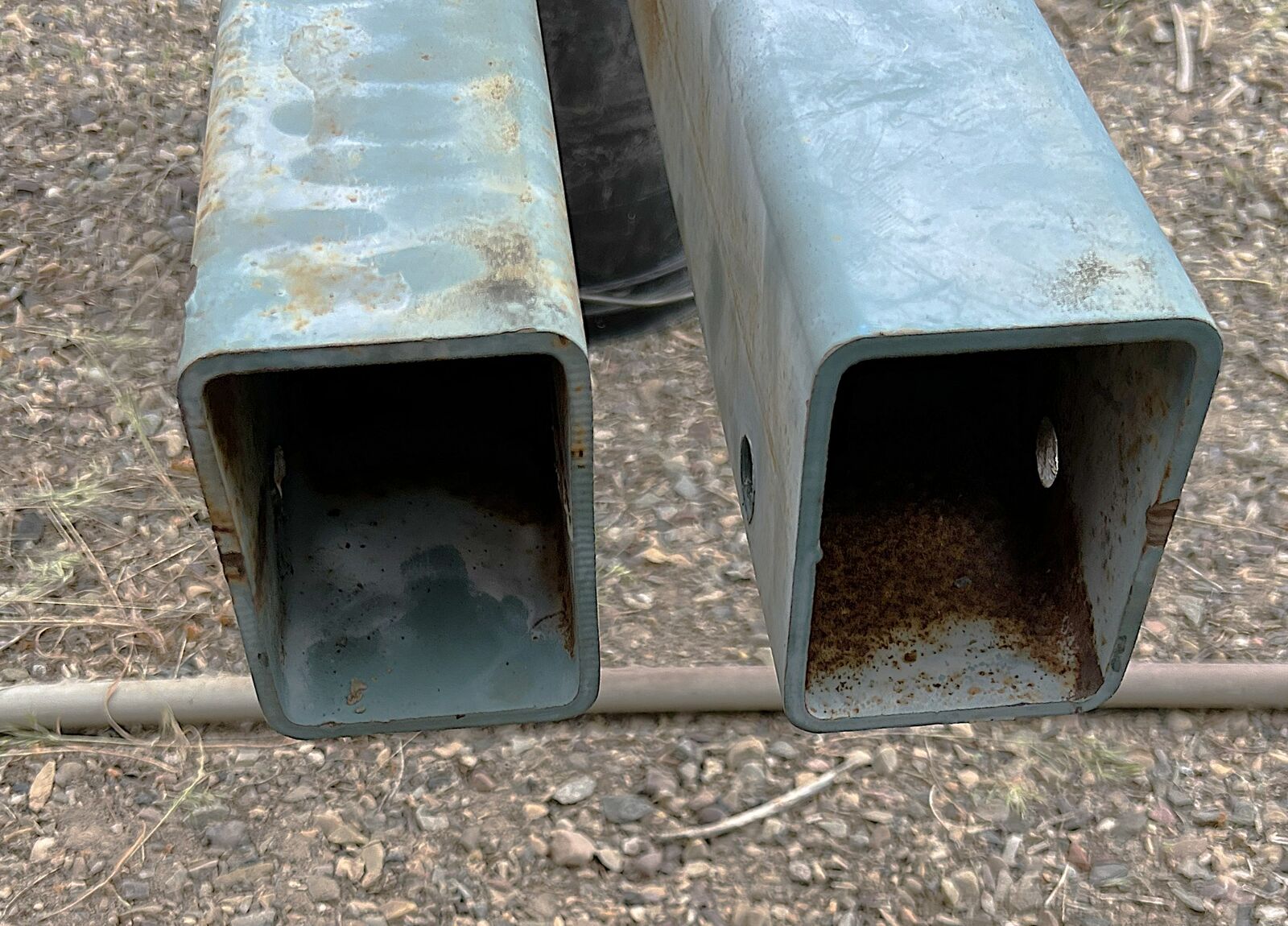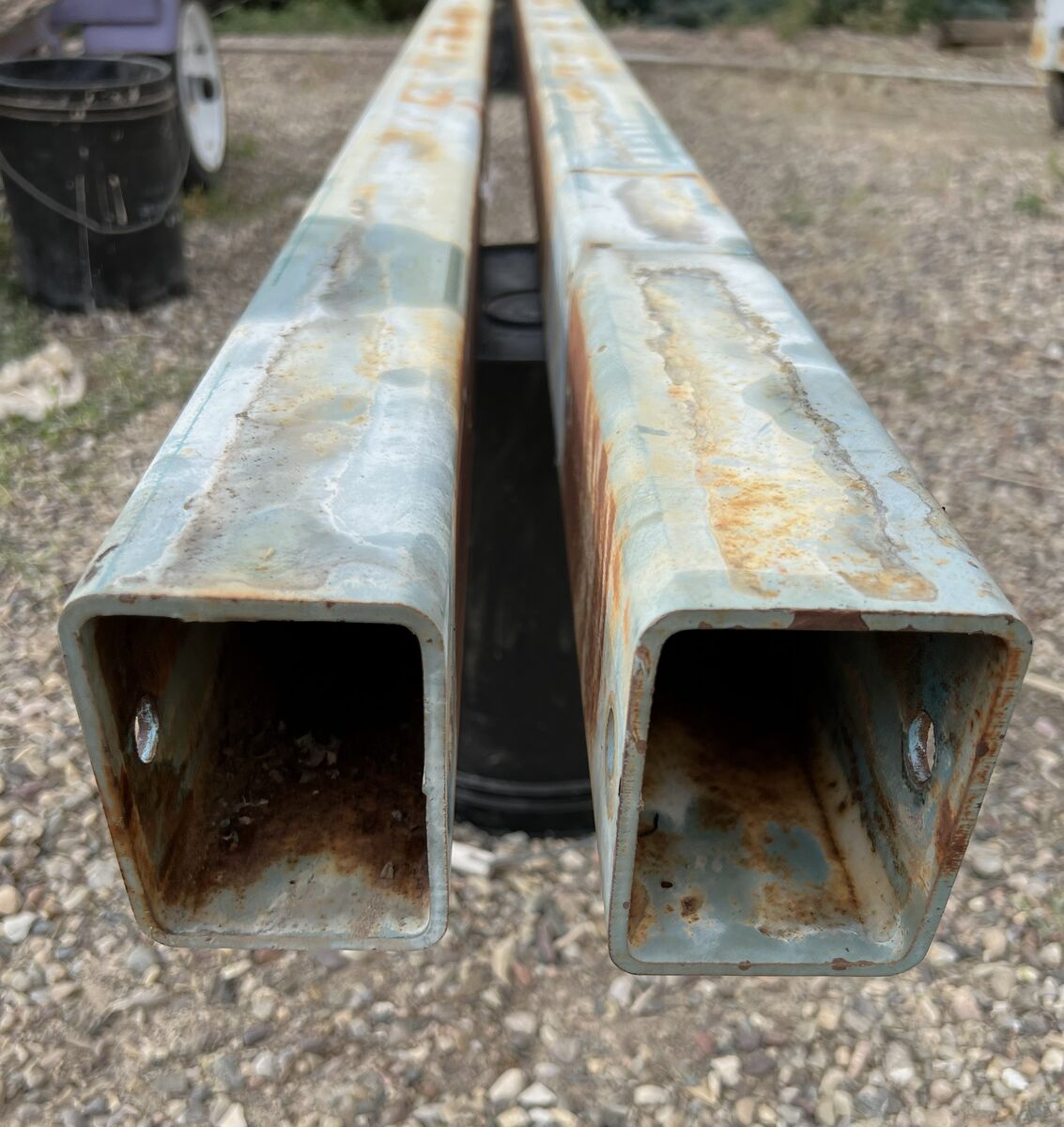 VenmoTwo heavy duty steel square tubing 16 feet Long, 3"X4". Tubing is 3/16 inches Thick. Removed from old boat trailer. Tubing is in good shape as seen in pictures. It has some drilled holes used to put trailer together. (See other listings for other parts.)
