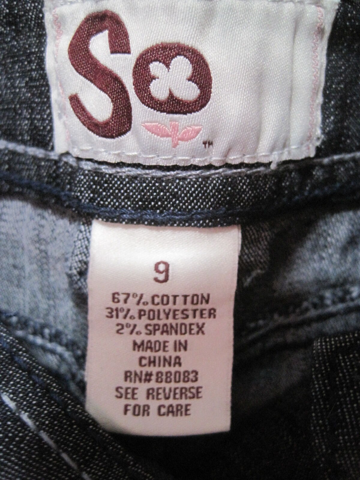 The SO Mini Straight Skirt in women's size 9 is a casual blue dark denim skirt with a zipper closure and front and back pockets. Made from a blend of polyester, spandex, and cotton, this lightweight and easy-care skirt is perfect for summer occasions like travel and beach outings. Featuring a mid-rise and short length, this skirt is accented with buttons and zippers, and has a solid pattern with a logo detail. The denim fabric wash adds to the American theme of this stylish and comfortable piece from the SO brand.