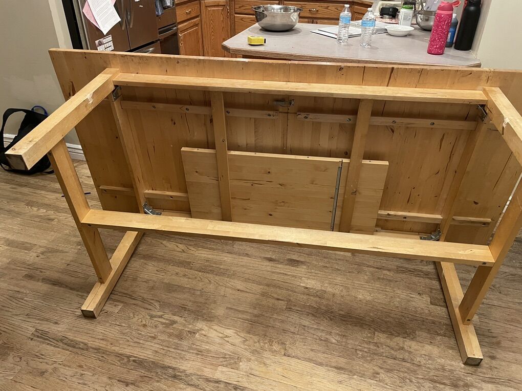 This table has been loved. From a smoke free home. 5 chairs with extra pads included.