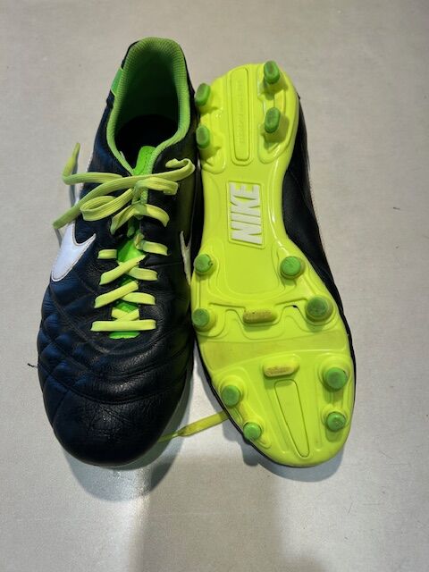 Venmo$30 OBO. These are almost brand new Nike Tiempo soccer cleats. They are mens size 10.5. The green, black and yellow are awsome. Let me know if you have any questions. The best way to get me is with a text, because I cannot always answer the phone.