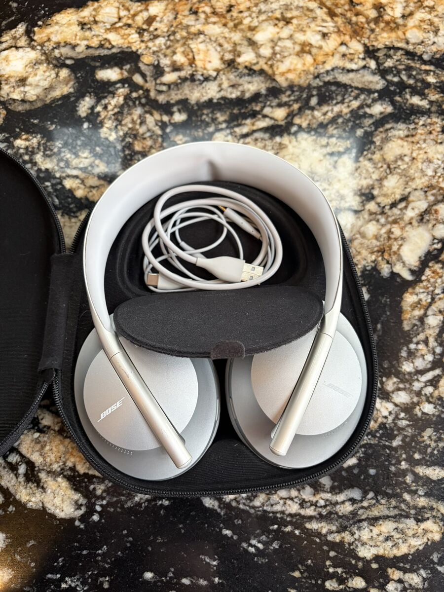 VenmoThese Silver Bose 700 Noise Cancelling Bluetooth headphones are in excellent condition. The ear cushions are like new, still super soft and comfortable. Comes with original case, USB charging cable, and headphone jack for older devices. I also have a listing for the black headphones.