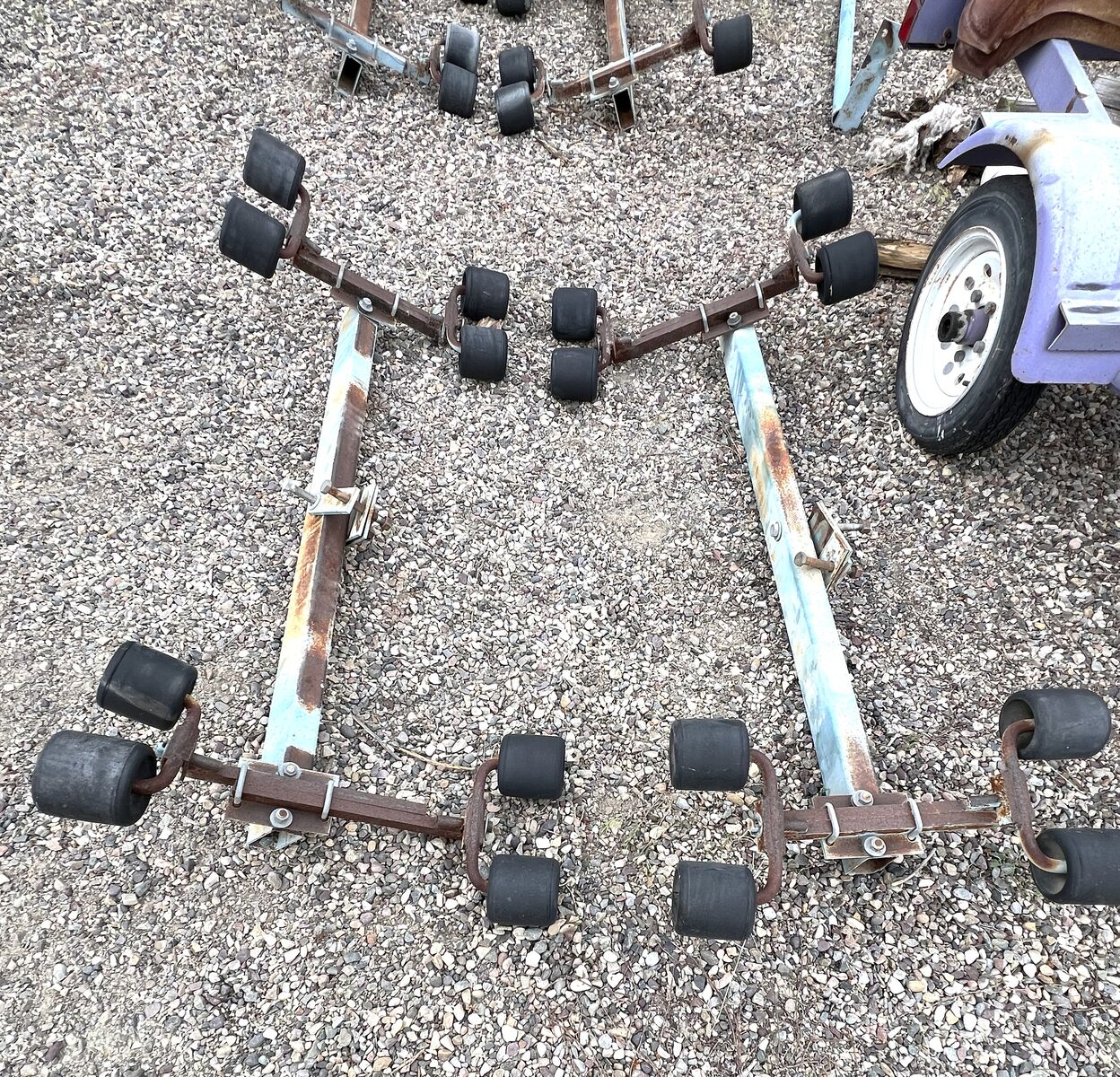 VenmoThese boat trailer roller sets (2) were removed from a 24 foot boat trailer. While old, they are in good shape as shown in the photos. Useable for a boat trailer or other trailer type where roller motion is required.
